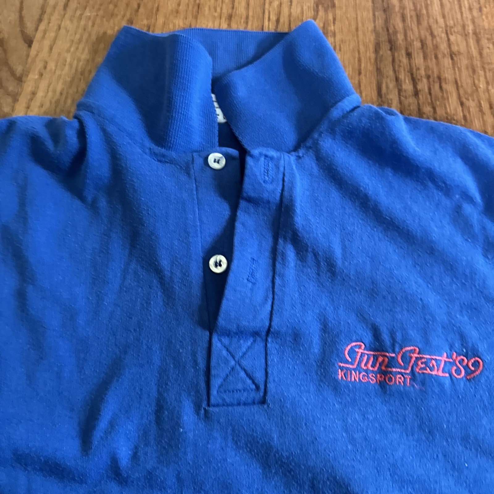 как выглядит 1989 Fun Fest Polo Shirt Medium M Blue Embroidered Logo Kingsport Tri Cities VTG фото