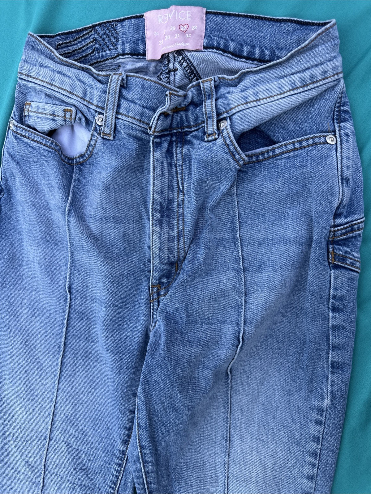 Revice Blue Denim Star Behind Slim Straight Cut Jeans Womens Size 27 Cotton