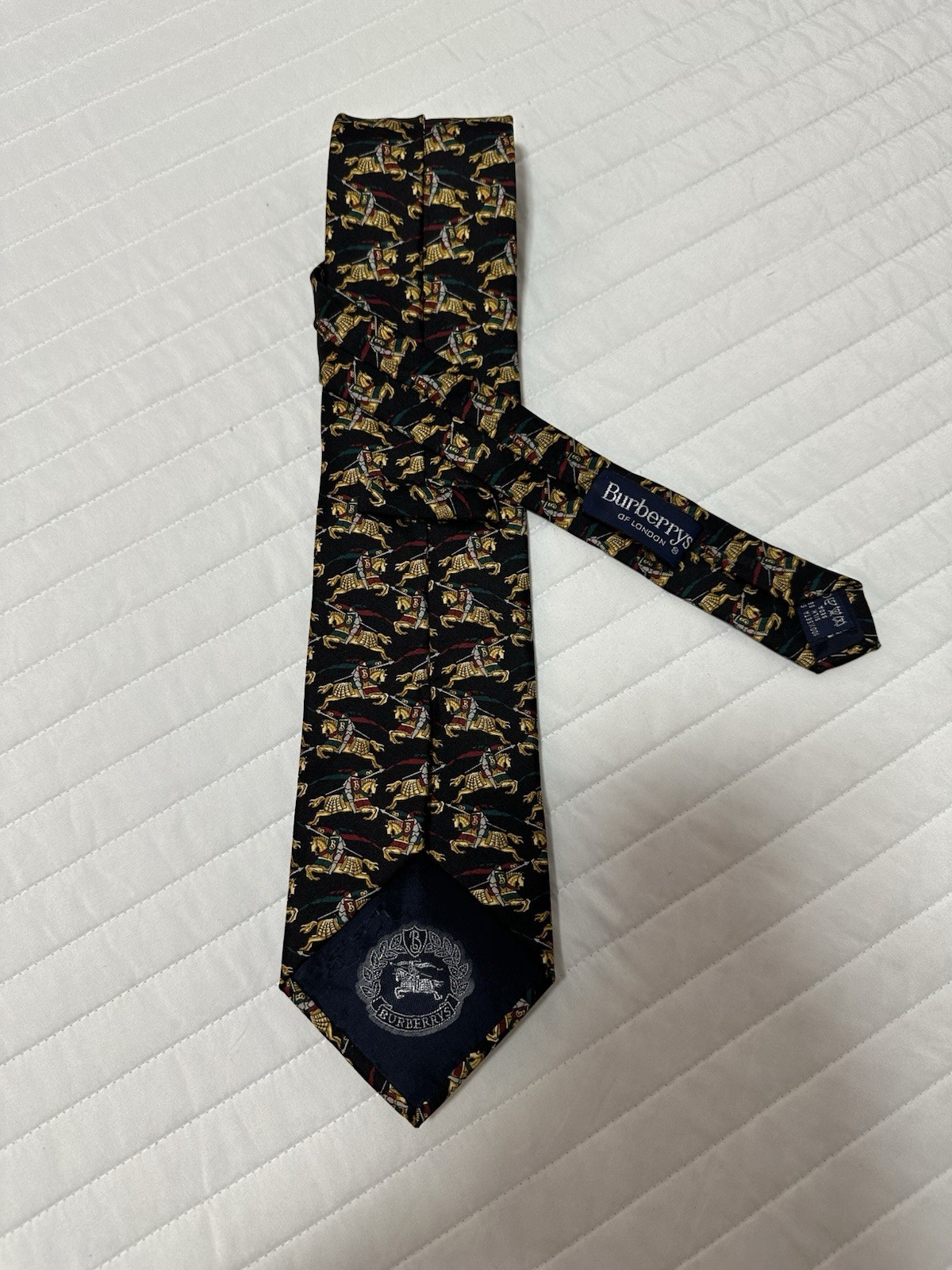 как выглядит Vintage Burberry Black Gold Prorsum Print Classic Style Neck Tie Mint фото