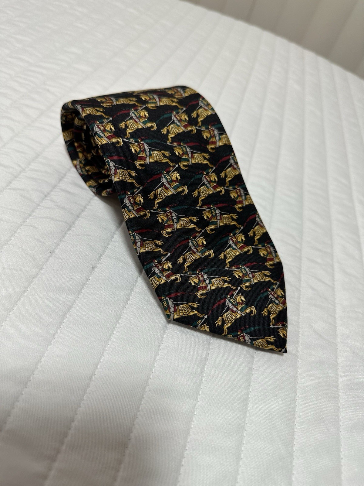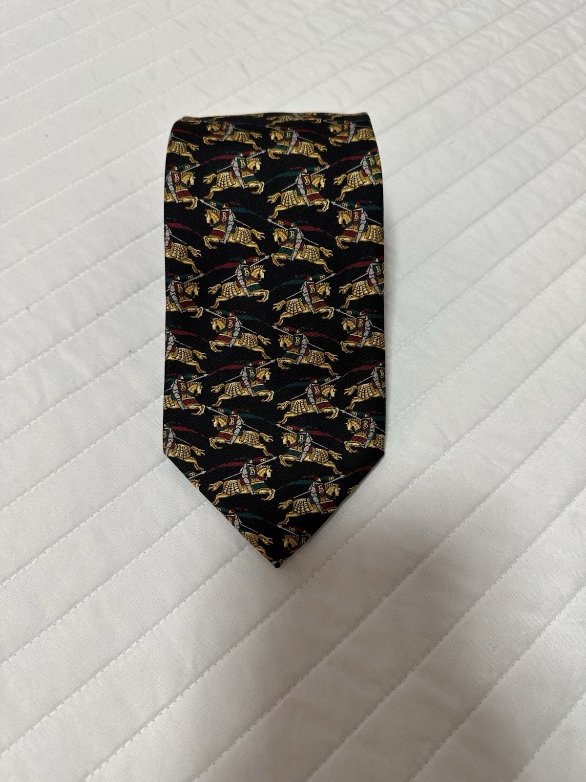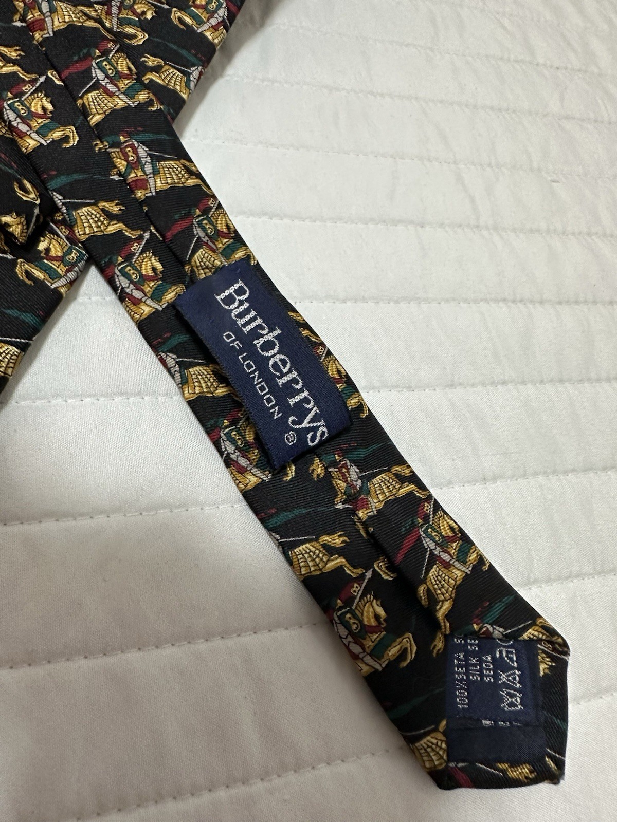 Vintage Burberry Black Gold Prorsum Print Classic Style Neck Tie Mint