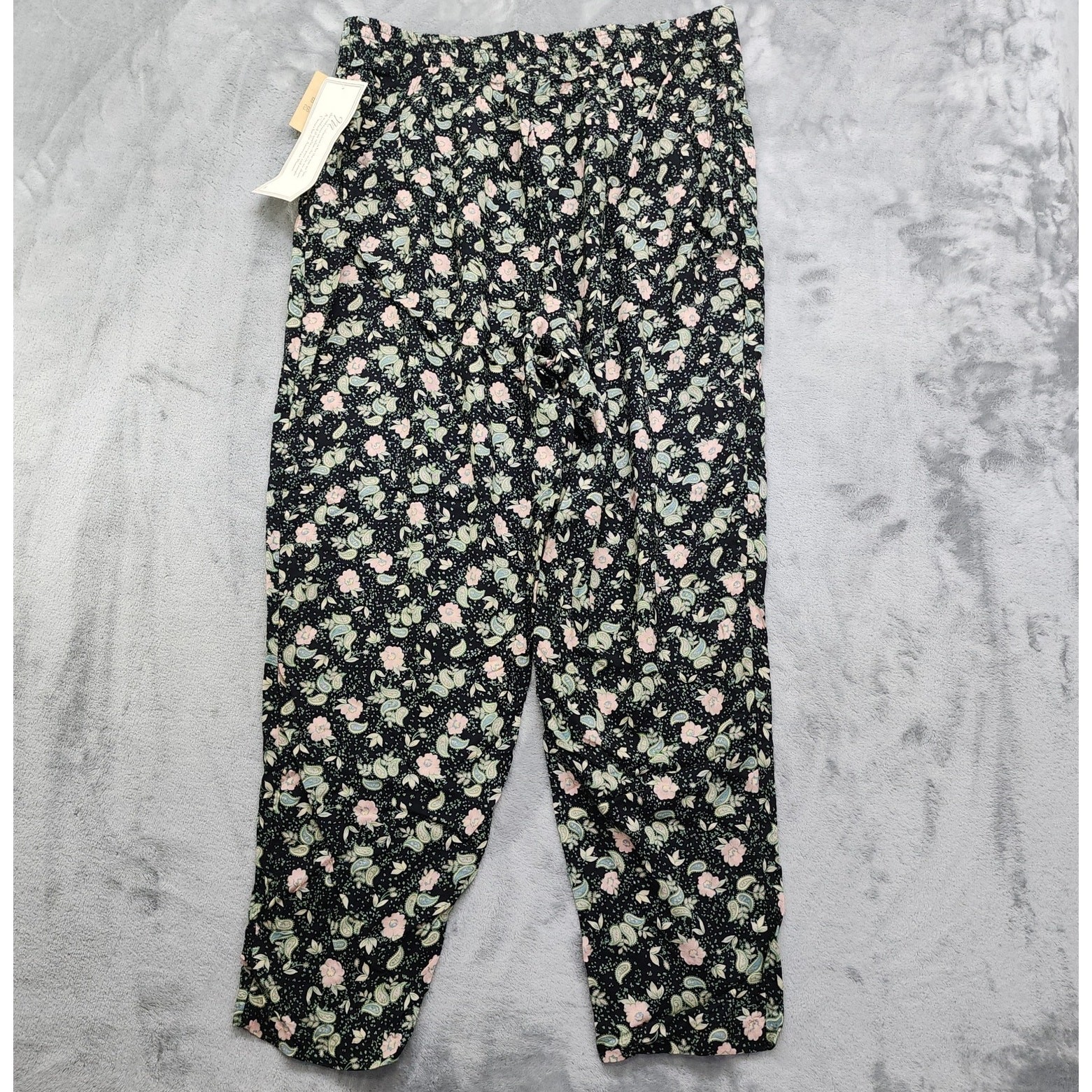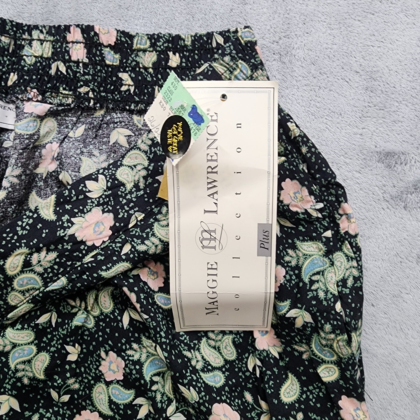 NEW Vintage Maggie Lawrence Pants Womens 26/28 Black Floral Pleated Tapered Leg