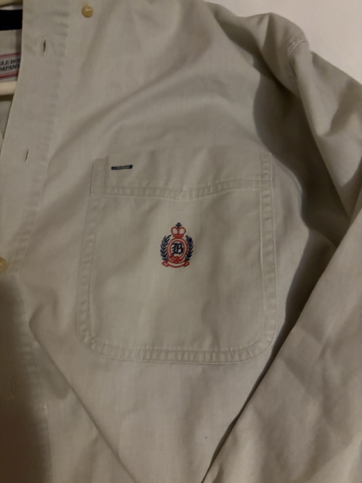 как выглядит Bugle Boy Co - Vintage 90s - ButtonUp Long Sleeve Tan Blue - Size L фото