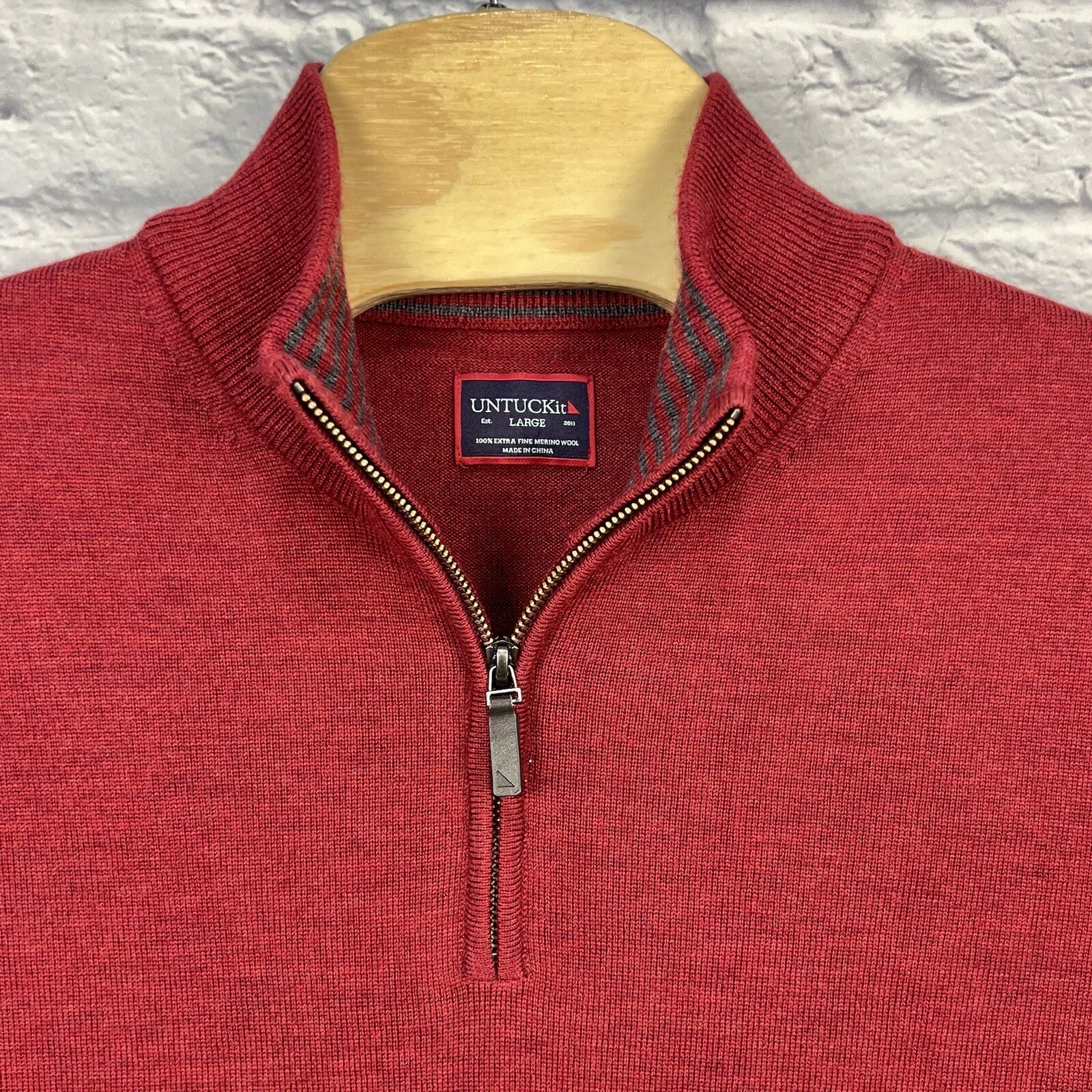 UNTUCKit Sweater Men Red 100 Extra Fine Merino Wool 1/4 Zip Pullover Size Large