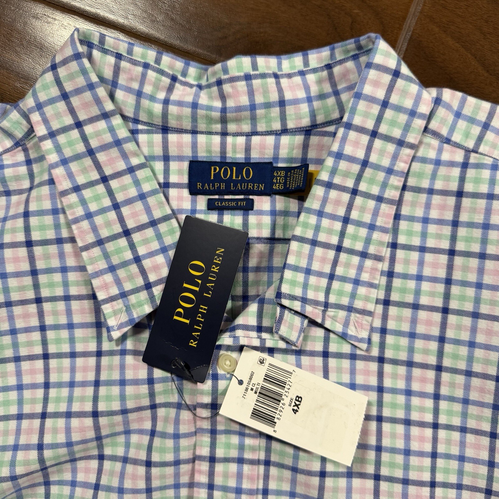 как выглядит Polo Ralph Lauren Mens Size 4XB Blue Pink Plaid Classic Oxford Button Up Shirt фото