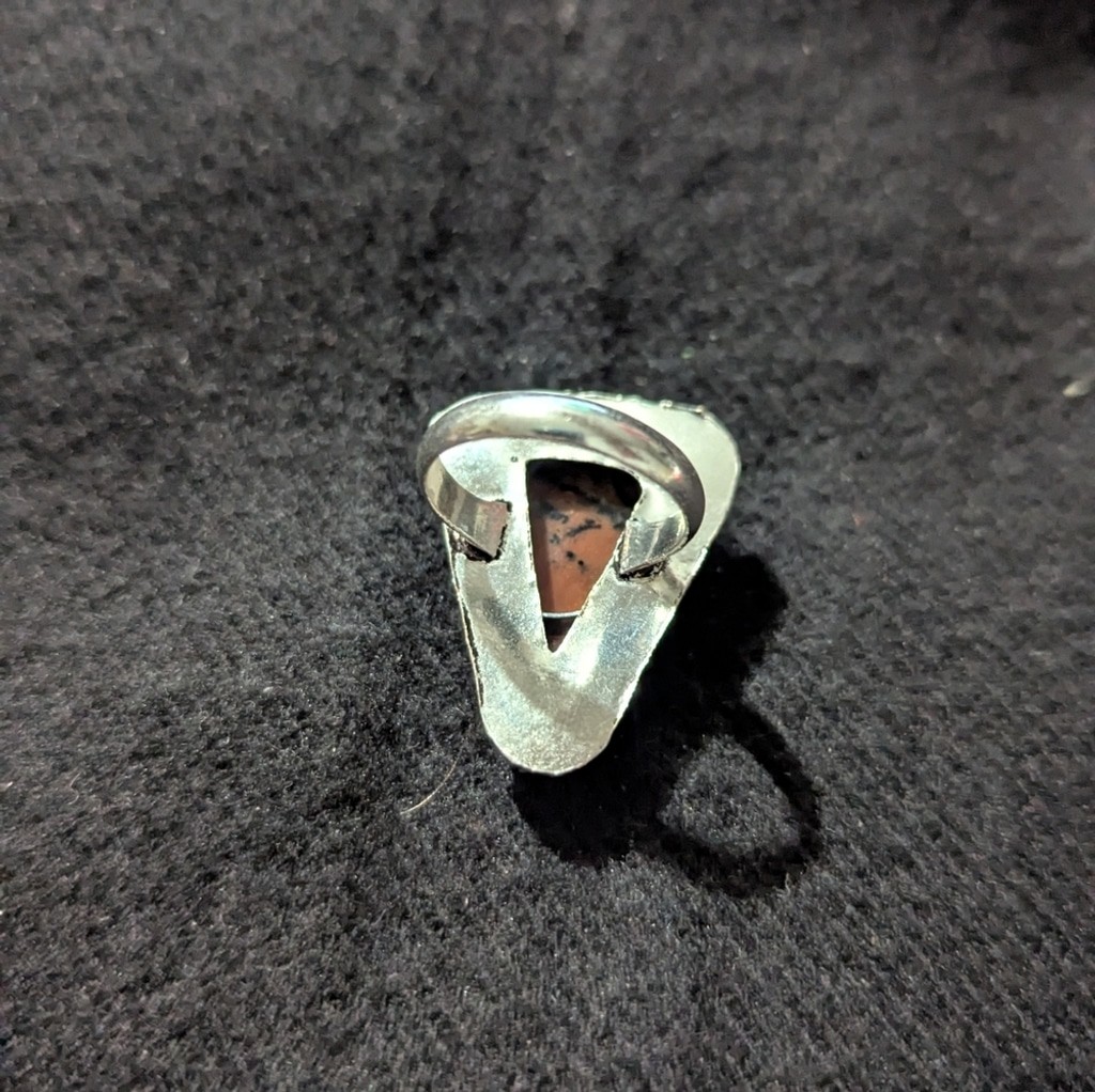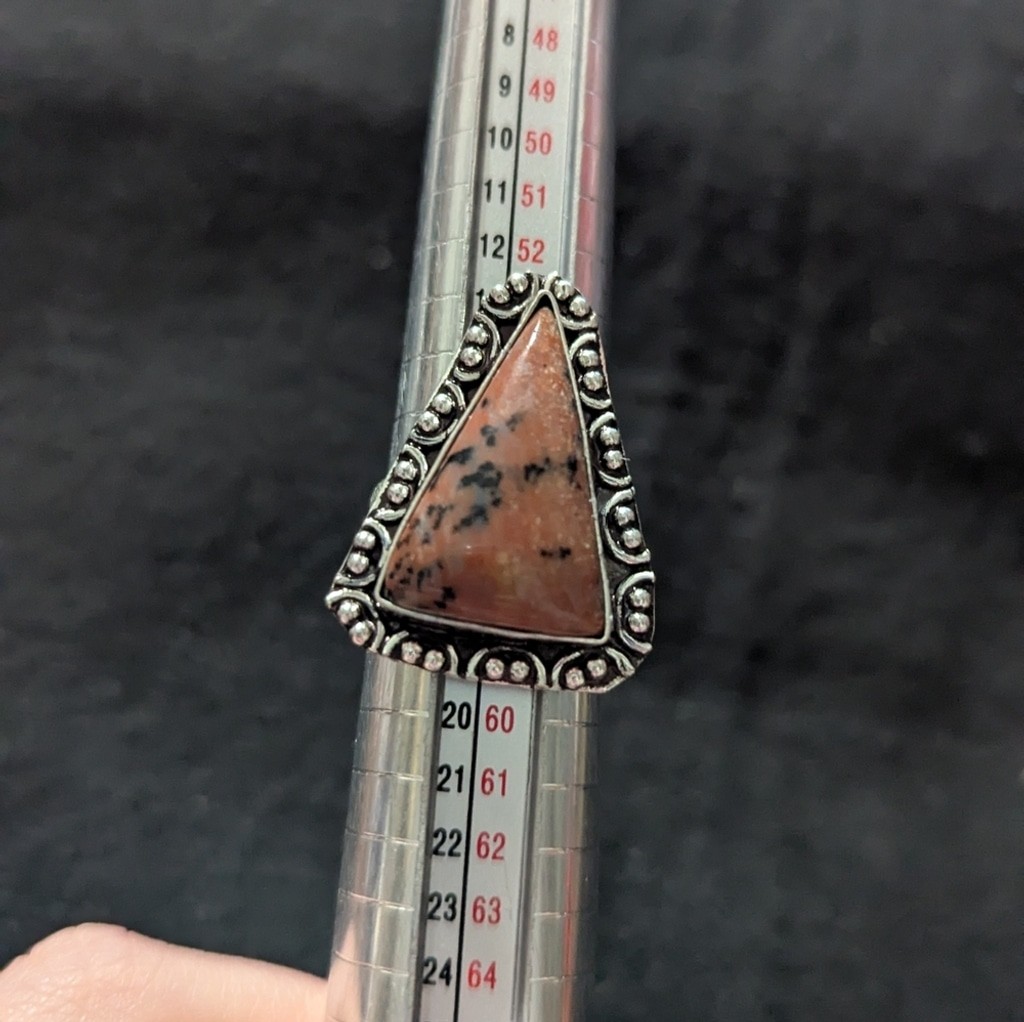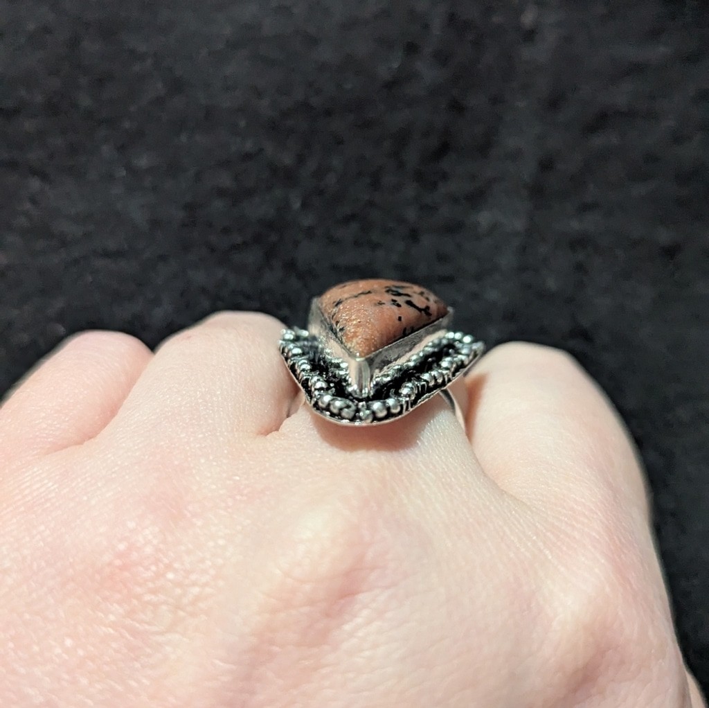 как выглядит Silver Plated Mahogany Obsidian Gemstone Triangle Statement Ring - Size 7.75 фото