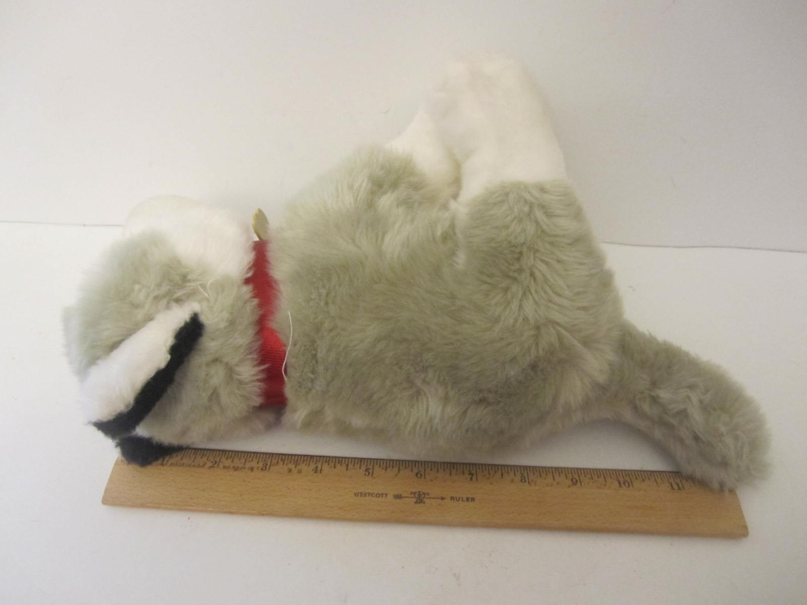 FAO Schwarz Plush Husky Puppy White Gray 10 Stuffed Animal Blue Eyes Red Collar