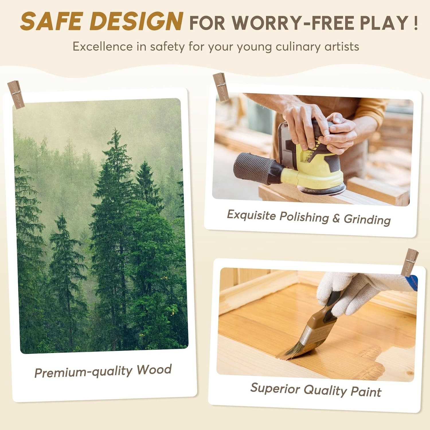 Play Kitchen with Realistic Lights Sounds, Wooden Kitchen Playset Chef Pret...