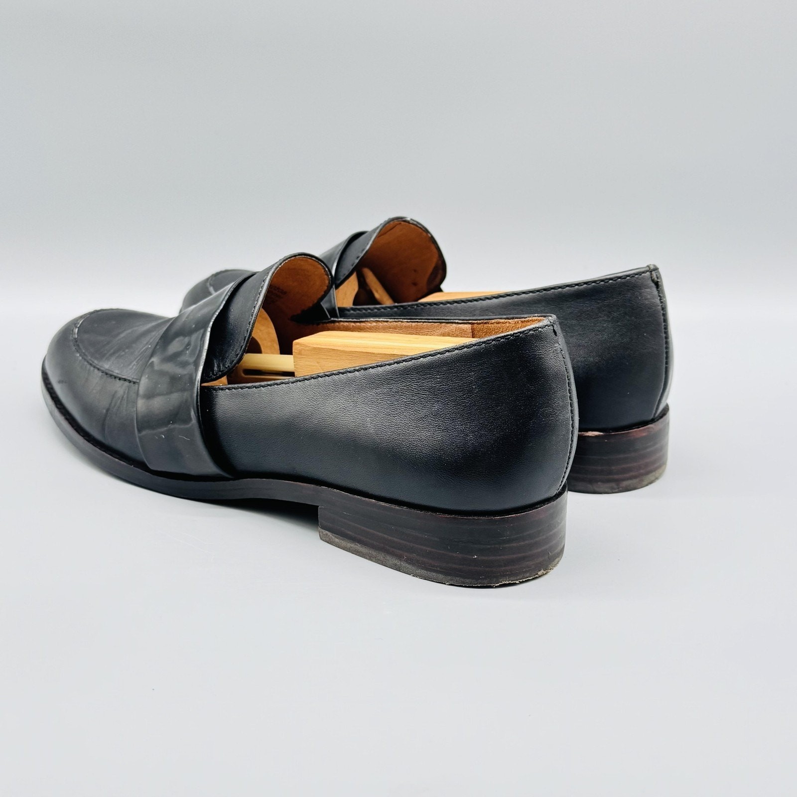 как выглядит Madewell Shoes Womens 8 Black Leather Matte Elin Penny Loafer Classic Slip On фото