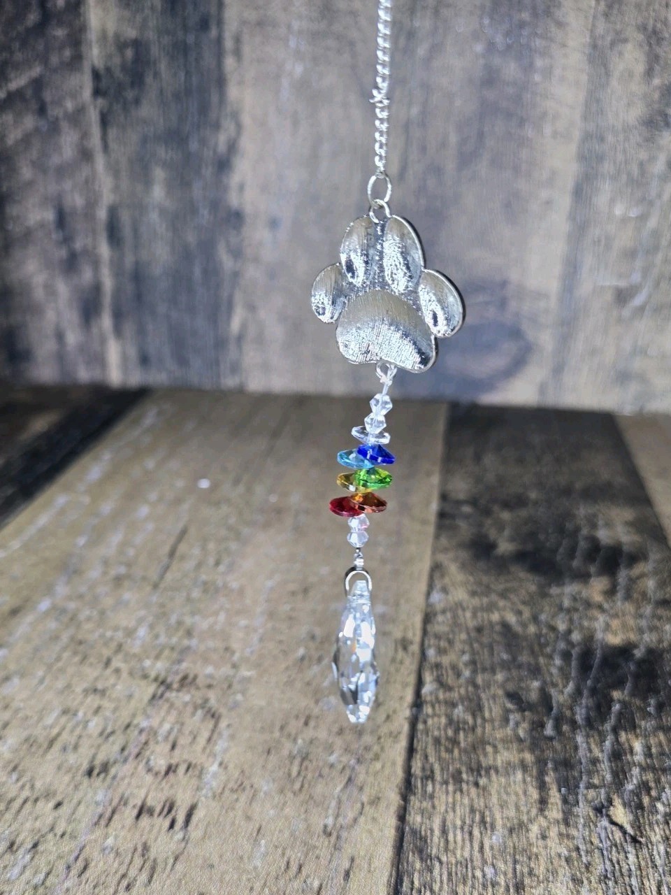 Paw Print Sun Catcher Crystals Prisms Hanging Decor Pet Memorial Sympathy Gift