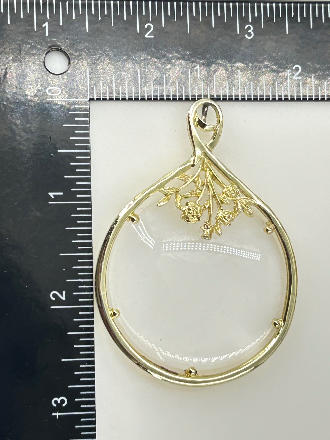 Womens Pendant Gold Tone Floral Design Clear Dome 2.5 Inch