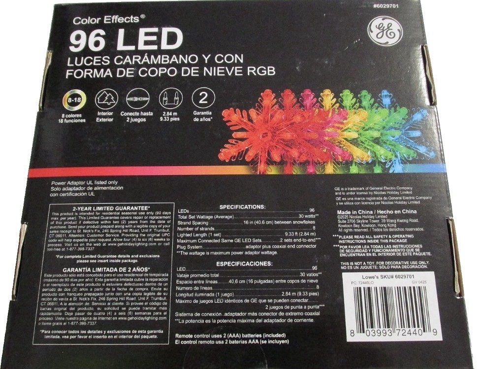 New GE Color Effects MultiColor Changing 96 LED RGB Snowflake Icicle Lights