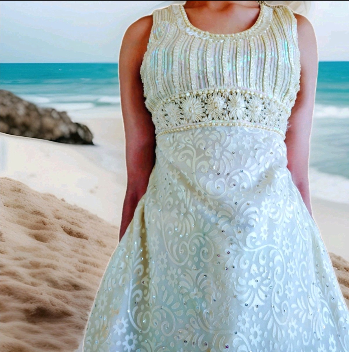 Indian Bollywood Readymade Pearl Work Party wear Chiffon Kurti Pant Dupatta Set