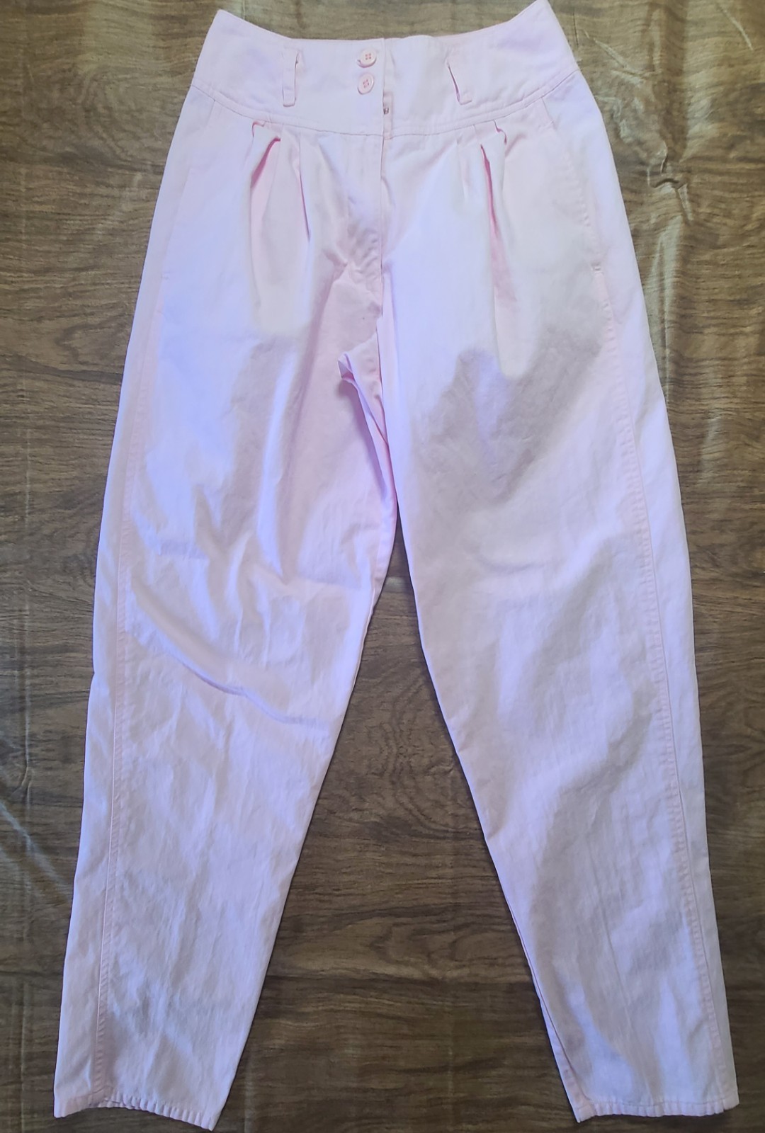 как выглядит Vintage Womens Parachute Pants 5/6 24x30.5 Pleat High Rise Tapered 80s Baby Pink фото