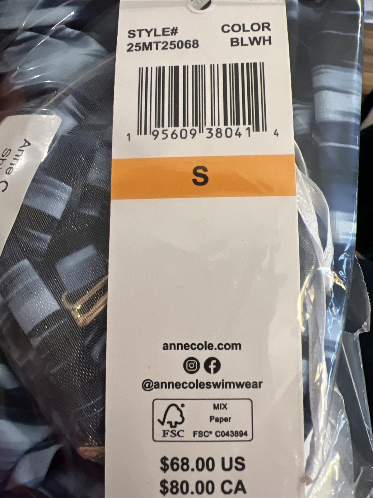 как выглядит Anne Cole Womens Twist-Front Shirred Bandeau Tankini Top - Blue Small 68 фото