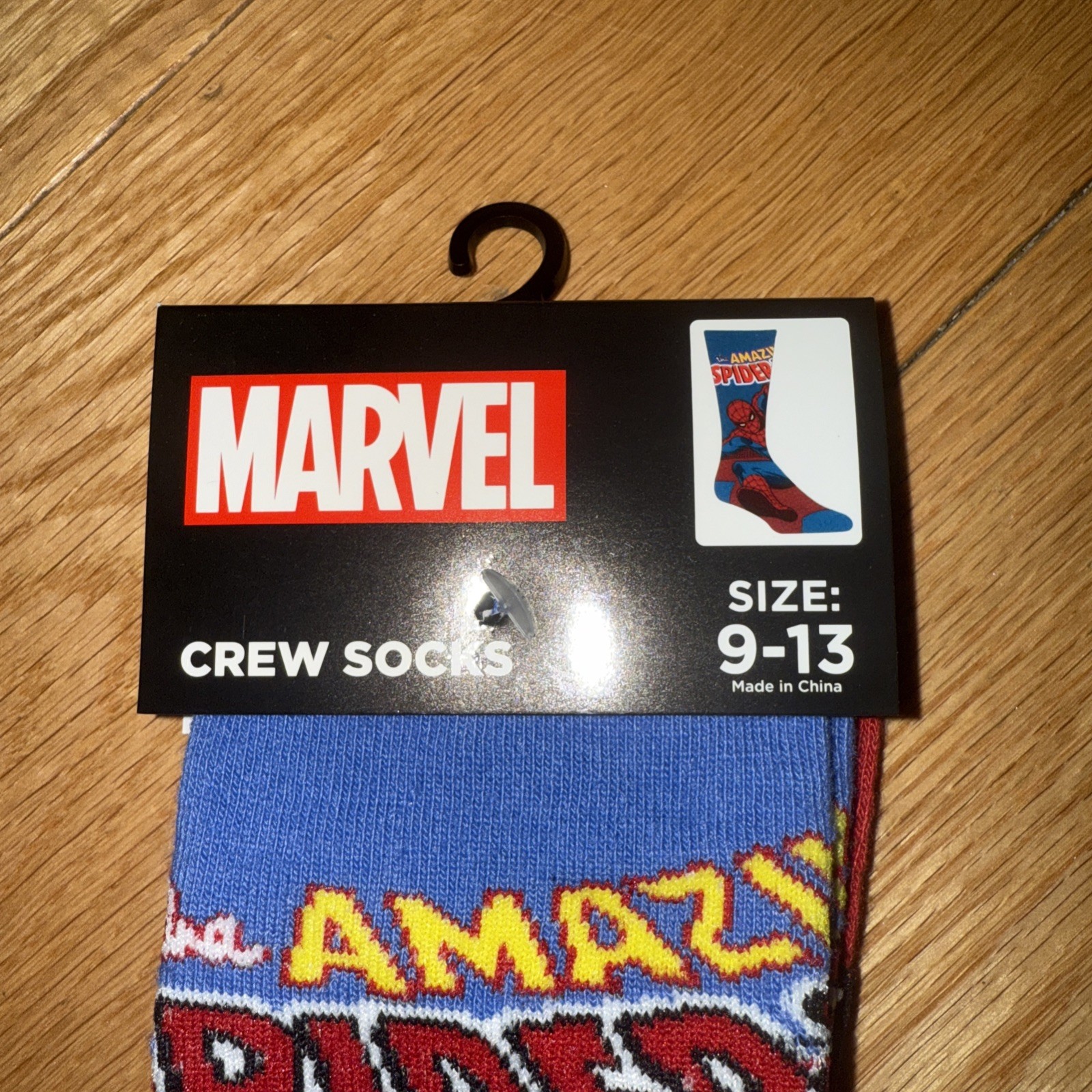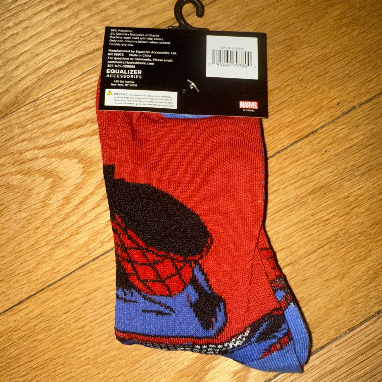 как выглядит 1 Pair Of Marvel Spider-Man Crew Socks, Fits Shoe Size 9-13, NWT фото