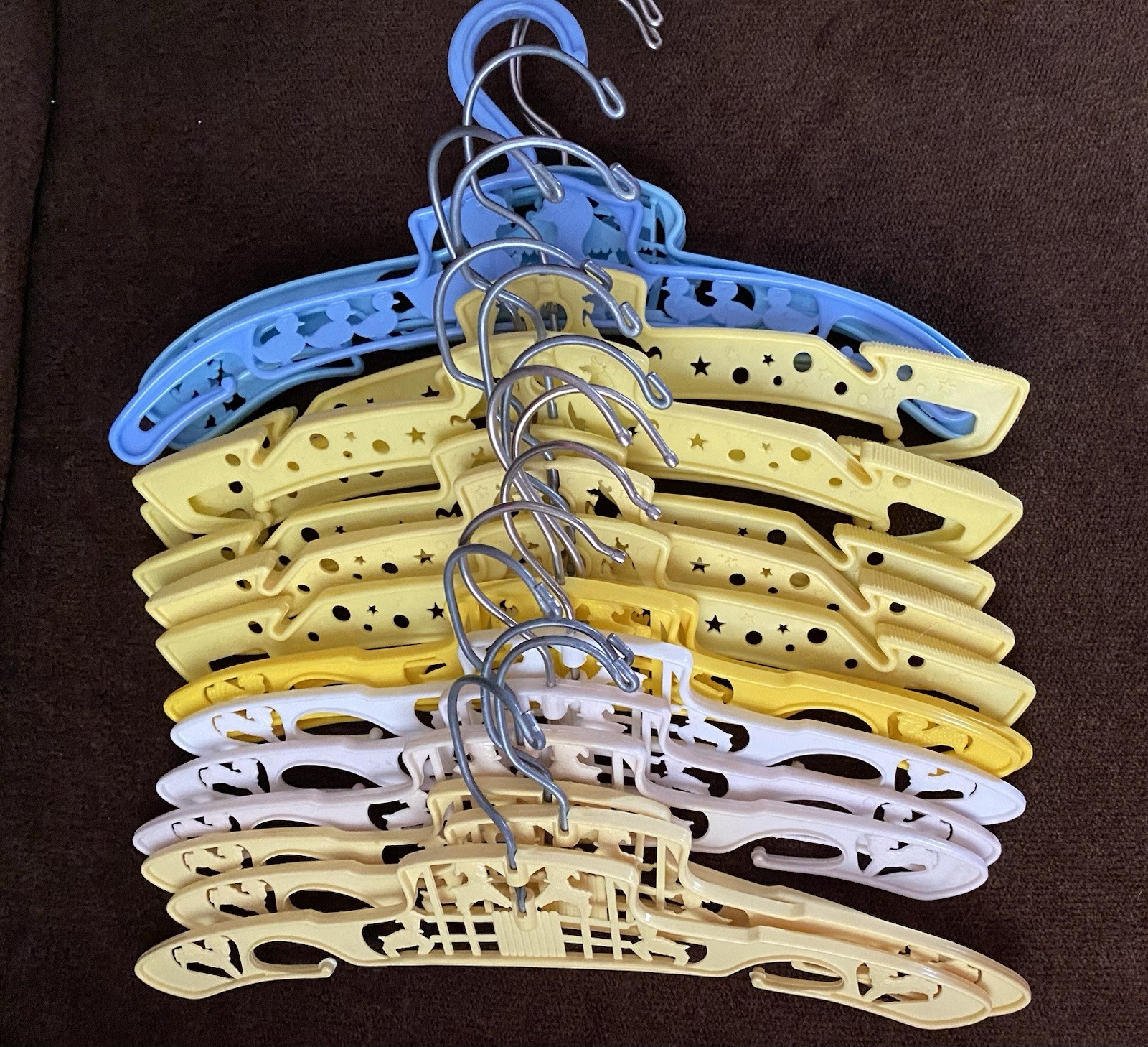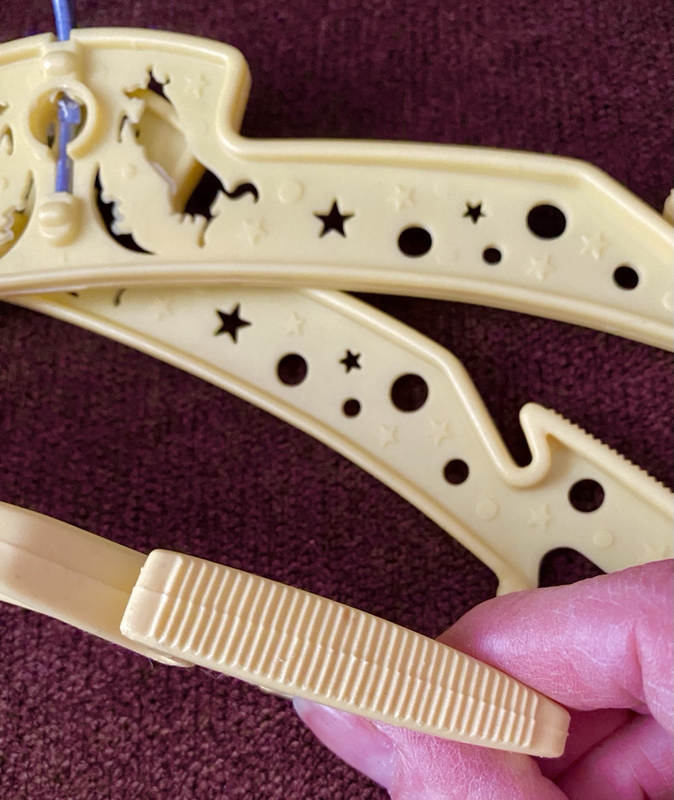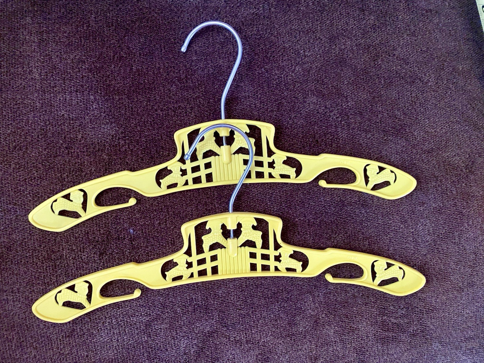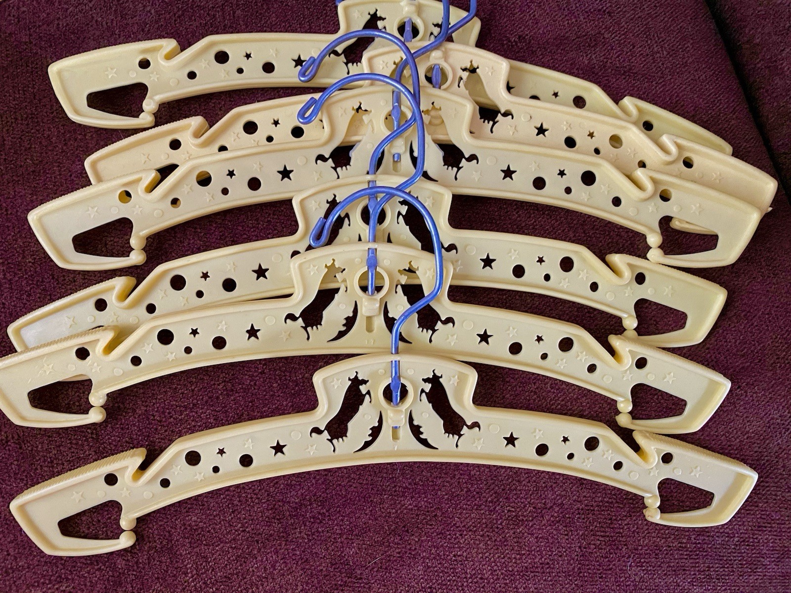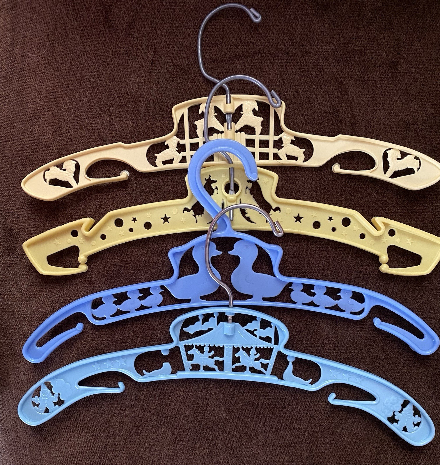 как выглядит 17 VTG Pastel Baby Clothes Hangers Plastic Metal Swivel Cow Jumps Over Moon 12 фото