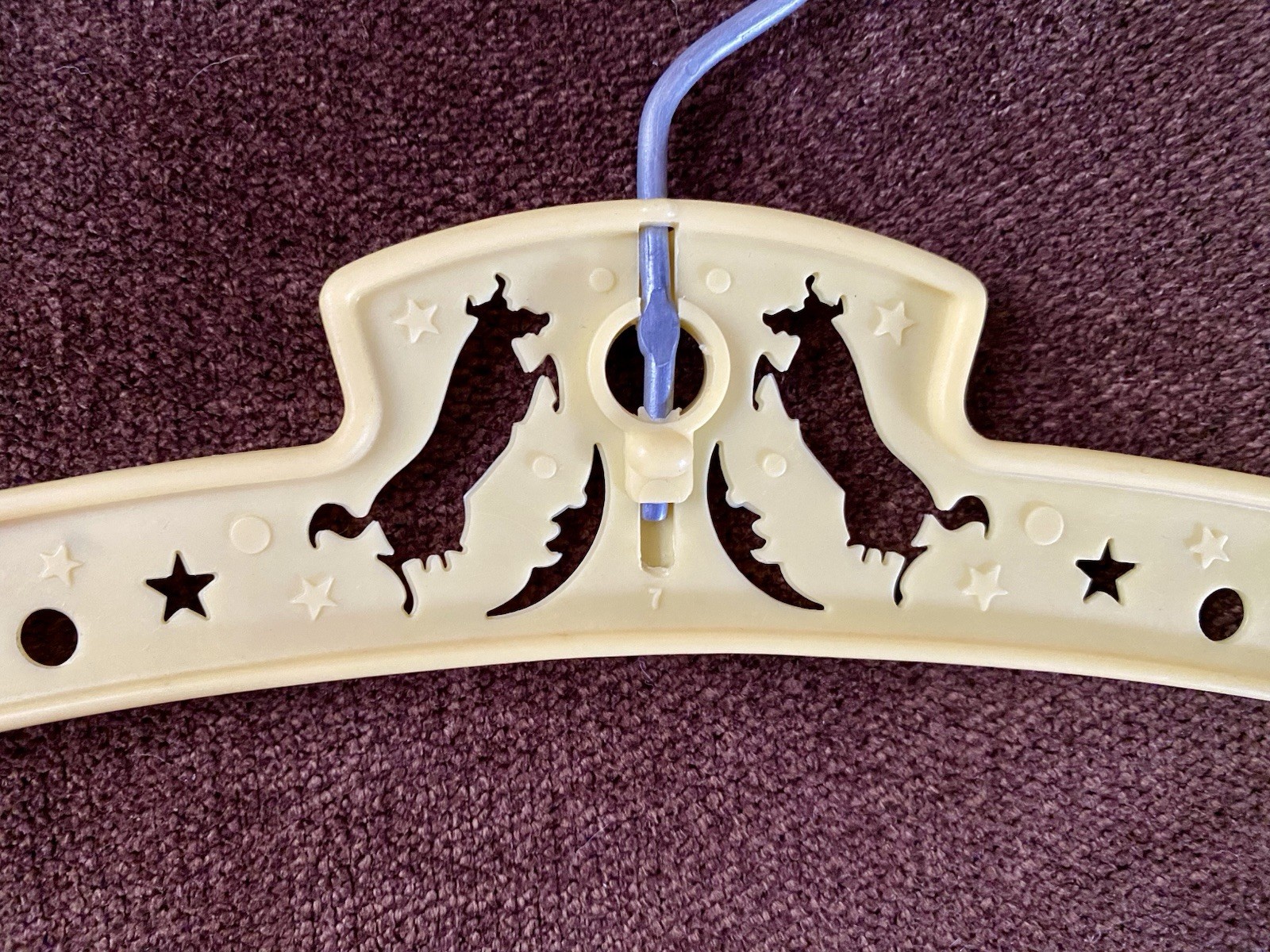 17 VTG Pastel Baby Clothes Hangers Plastic Metal Swivel Cow Jumps Over Moon 12