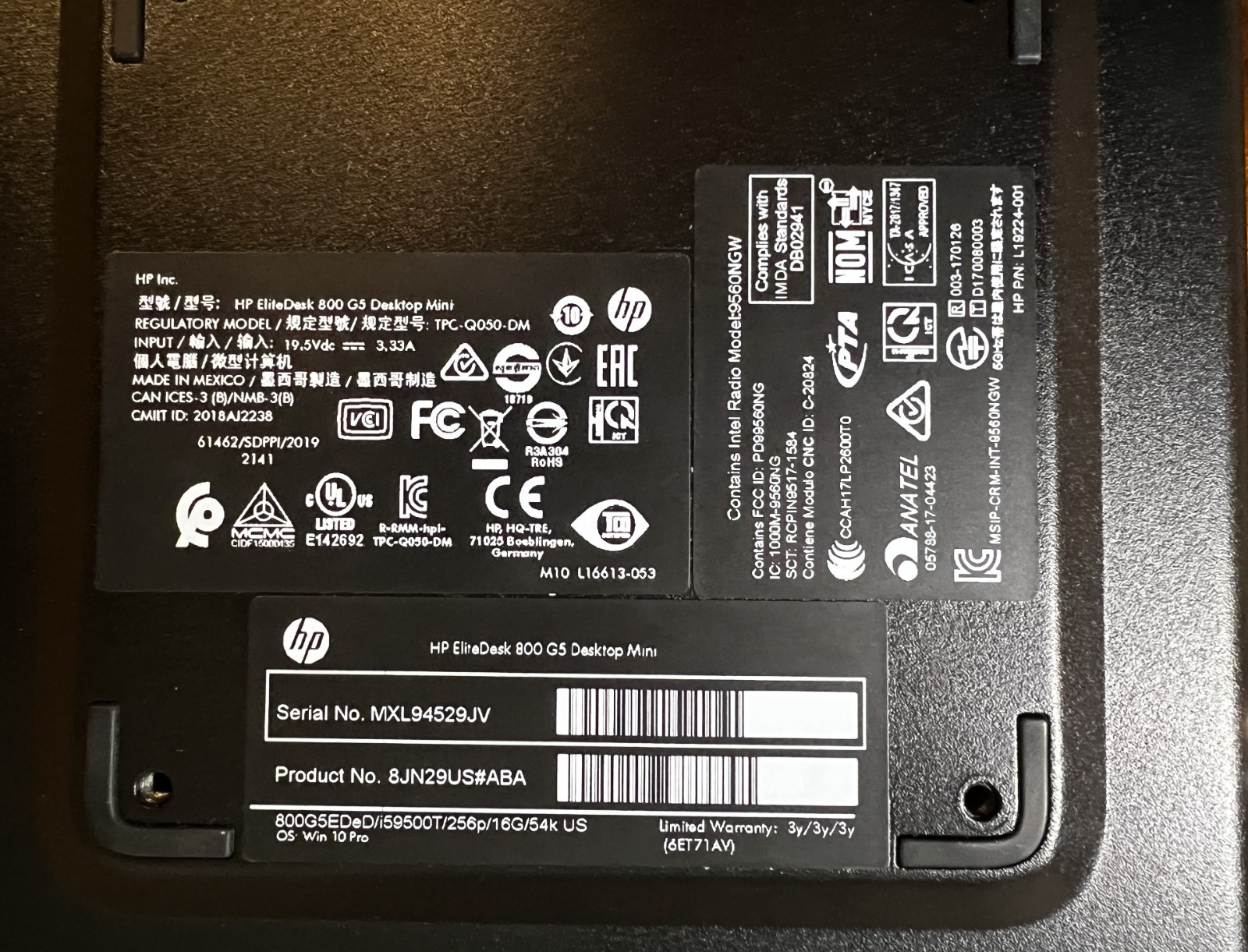 HP ELITEDESK 800 G5 MINI i5 9TH GEN 16 GB RAM Win 11 Pro 256GB SSD AC Adapt