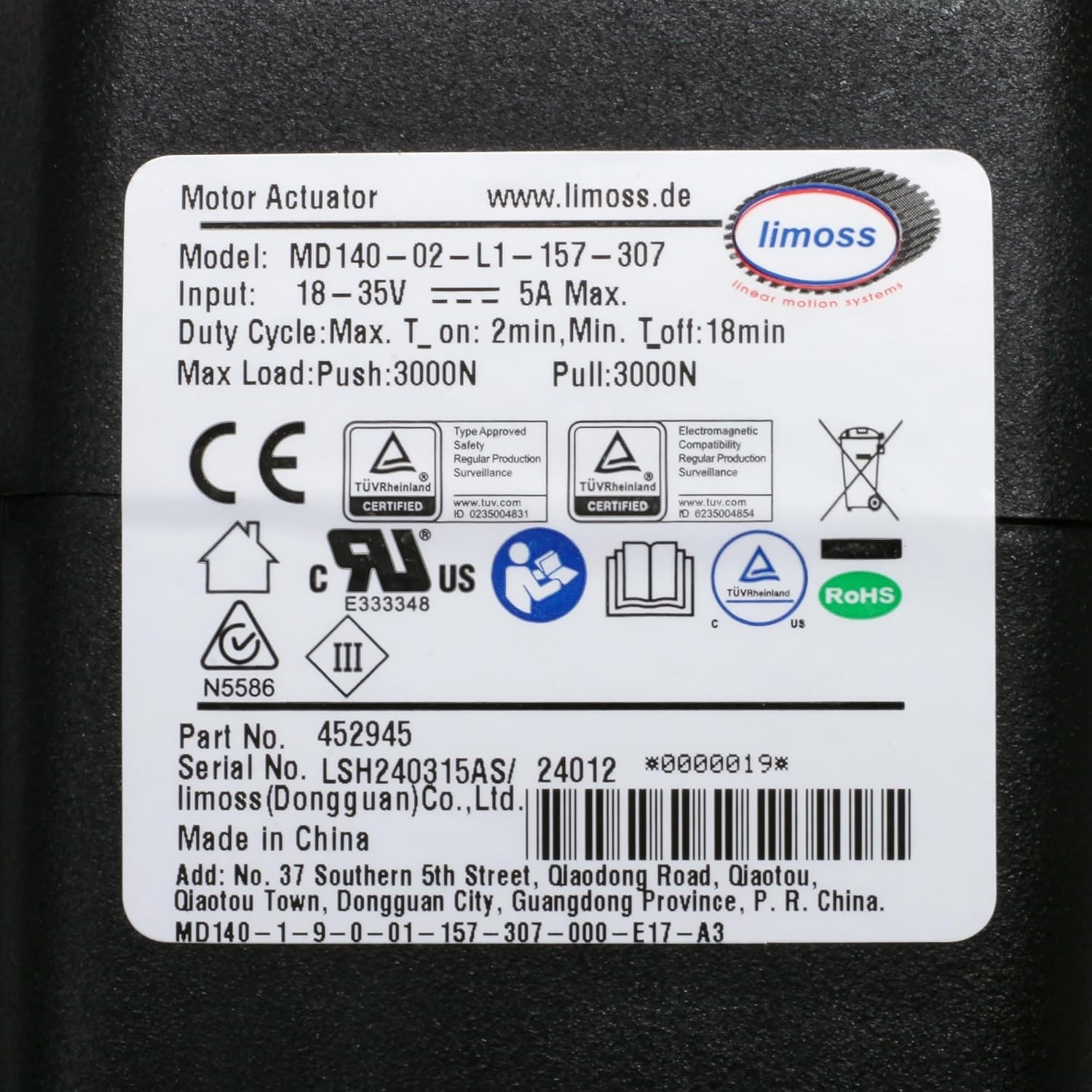 Limoss 450312 Motor Actuator MD140-02-L1-157-307 for Power Recliner Lift Chairs