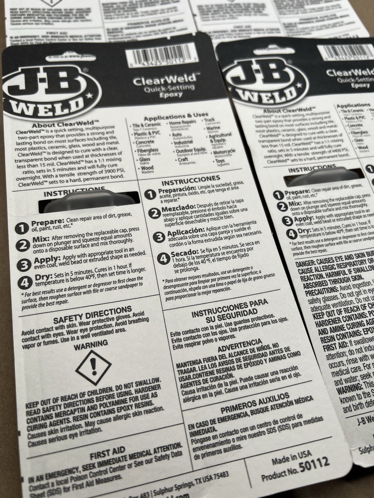 J-B Weld 50112 Quick Setting Epoxy Adhesive ClearWeld Series Syringe 4 Pack