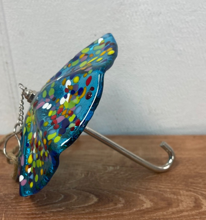 Art Blue Confetti Glass Umbrella Window Hanger Sun Catcher 4.75 Round