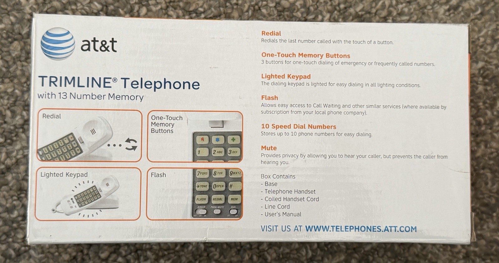 at t 210 Trimline Corded Phone Telephone Lighted Keypad 13 Number Memory