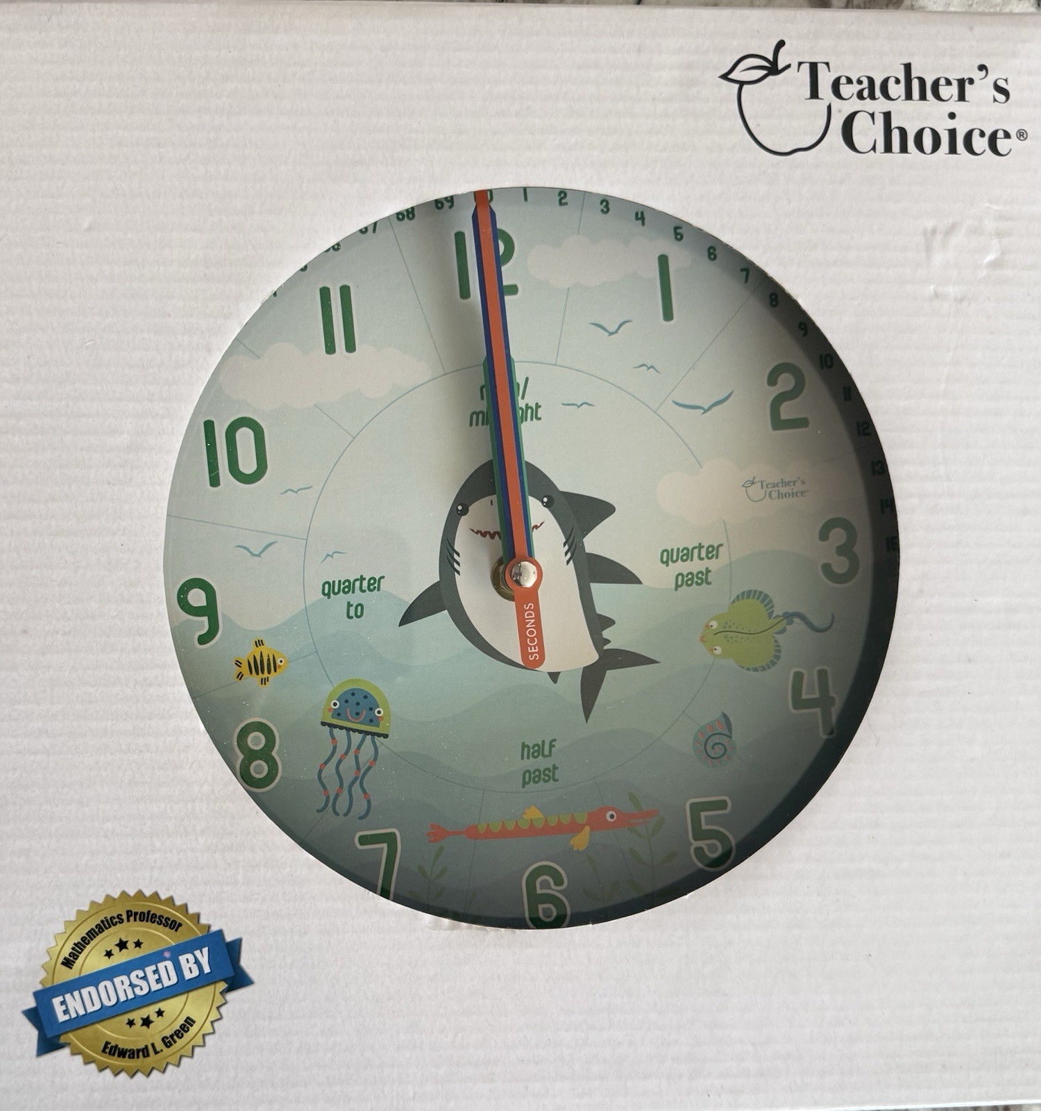 Teachers Choice Educational Wall Clock Shark Theme Enforced by Edward L. Green