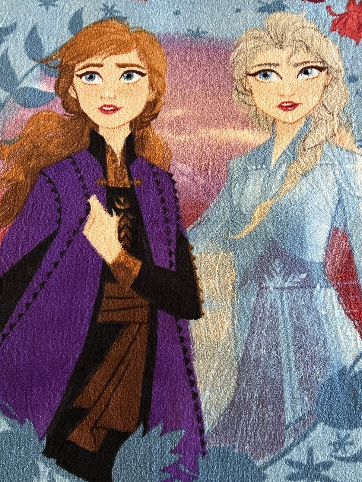 как выглядит Disney Frozen II Movie Anna Elsa Reversible Throw Plush Blanket Border 61x48 фото