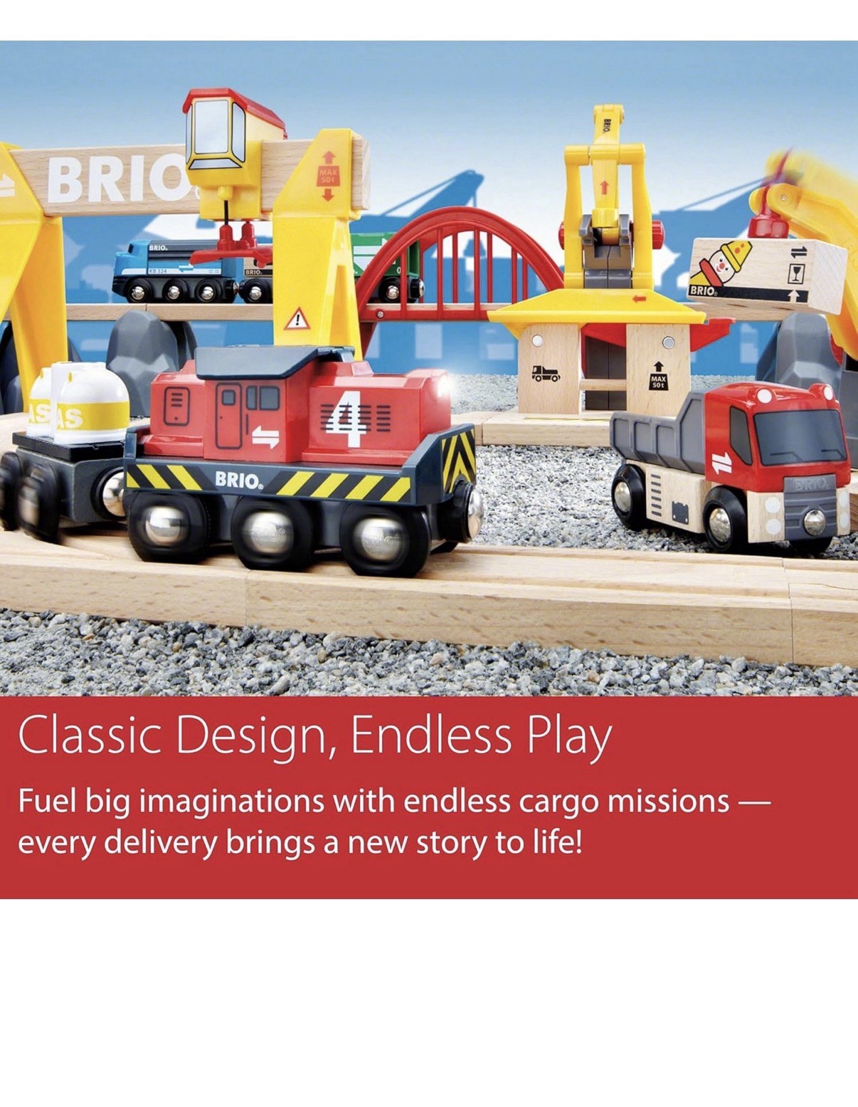 BRIO World Cargo Railway Deluxe - Wooden Track Train Set Battery-Powered Engine