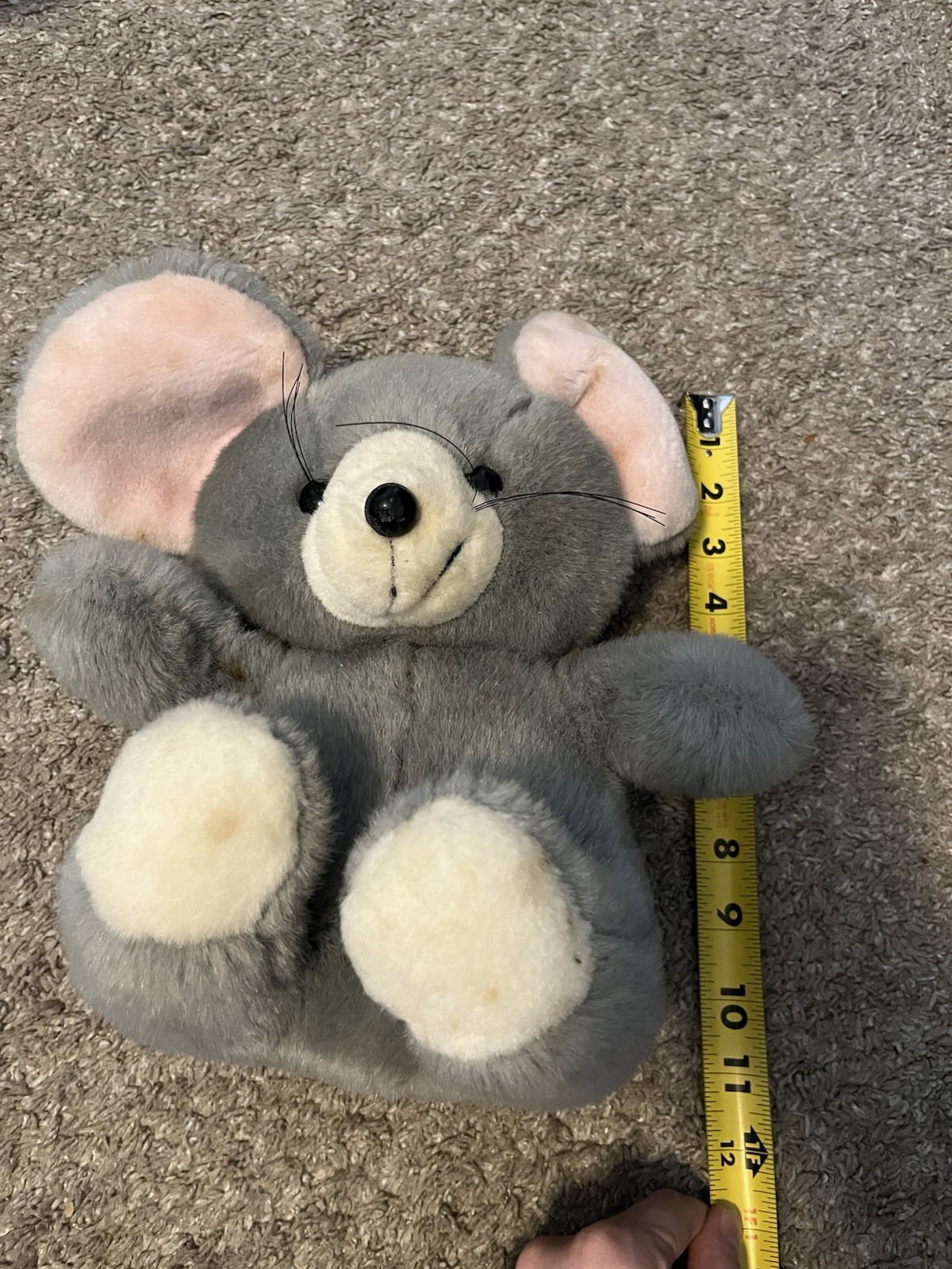 как выглядит Vintage Retro Gray Mouse White Ears Whiskers Plush Stuff Animal Toy фото