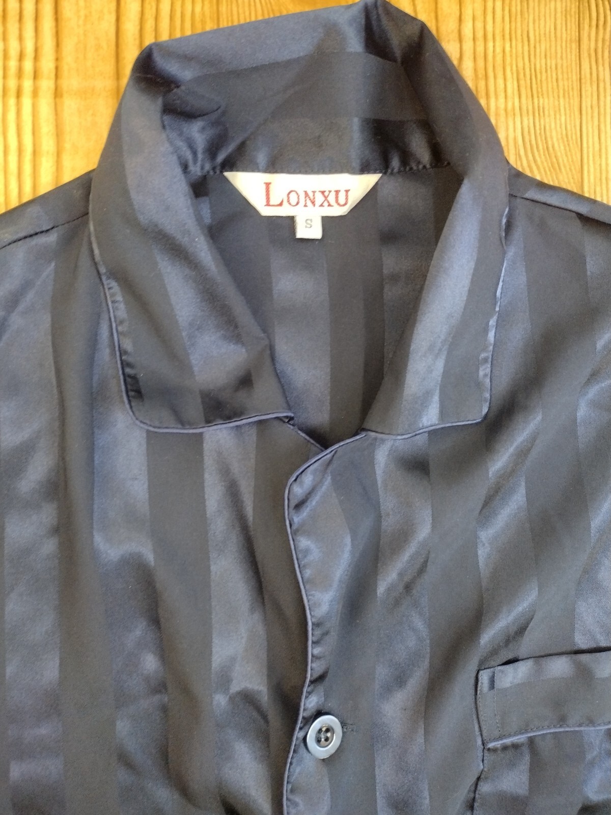 как выглядит Lonxu Satin Artificial Silk Pajama Sleep Set Womens Sz Sm Blue Pants Long Sleeve фото
