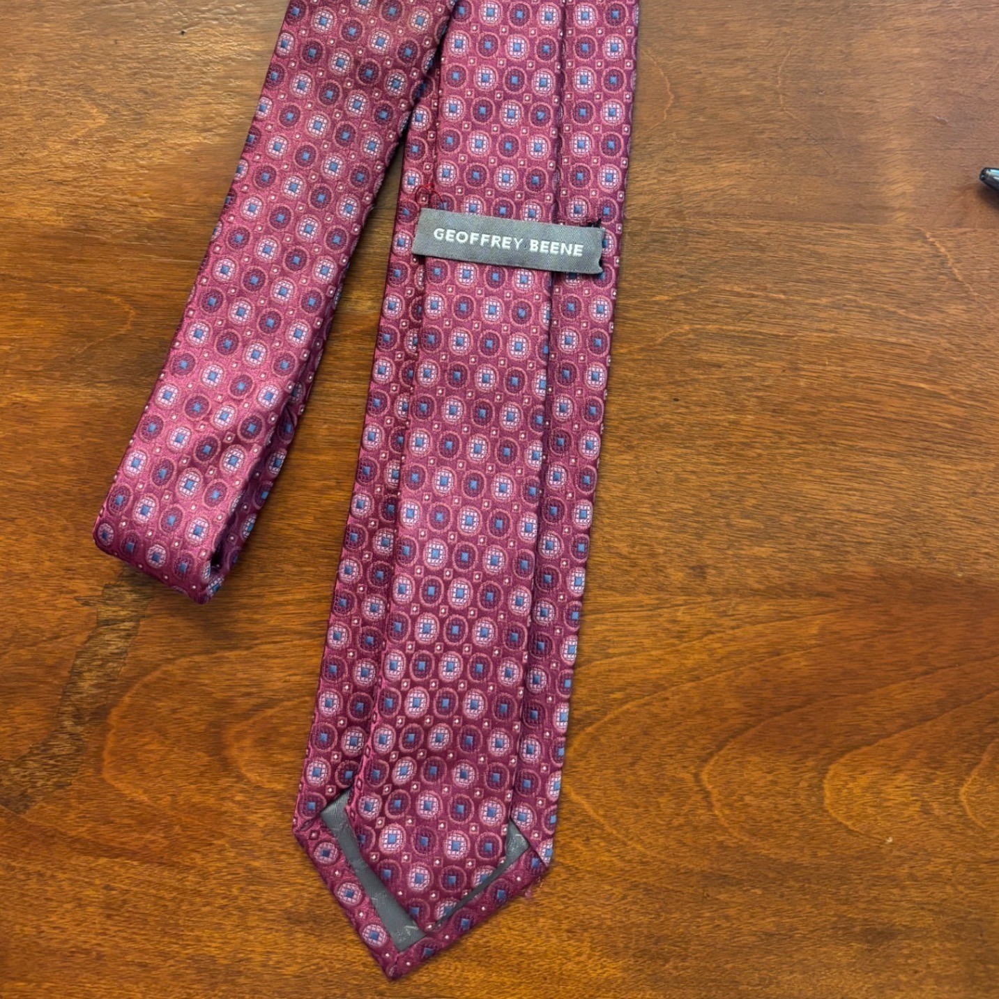 Geoffrey Beene purple Silk Necktie Geometric Circles Square Pattern Business tie