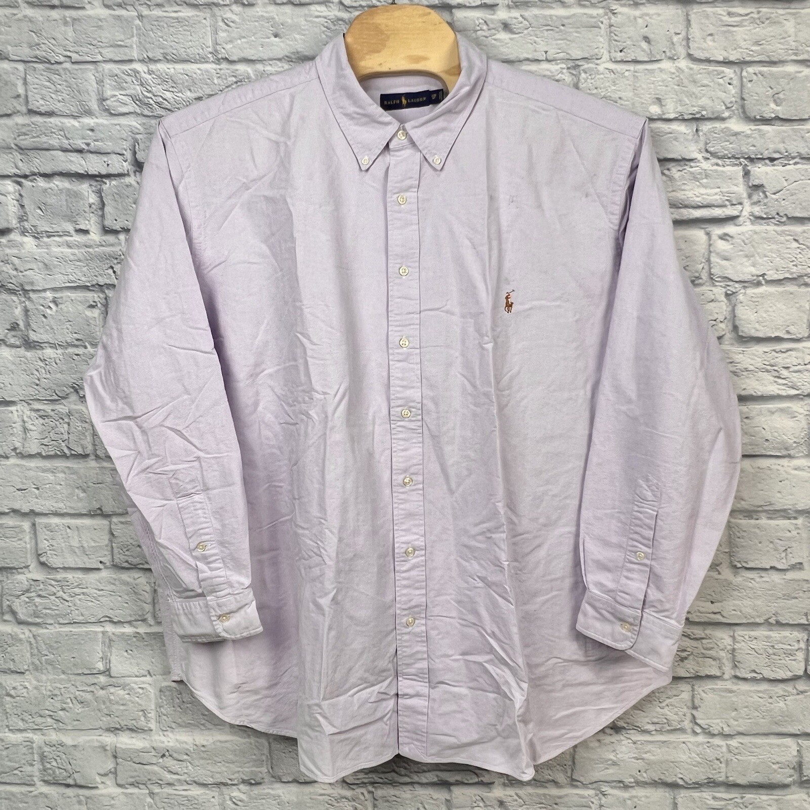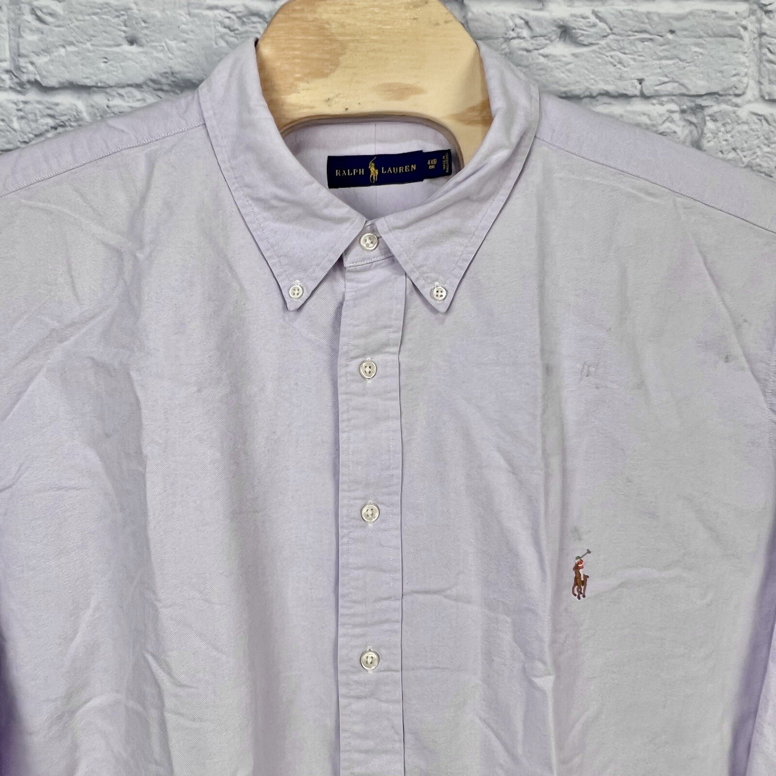 как выглядит Ralph Lauren Purple Solid Oxford Long Sleeve Button Down Shirt Mens 4XB BIG Flaw фото
