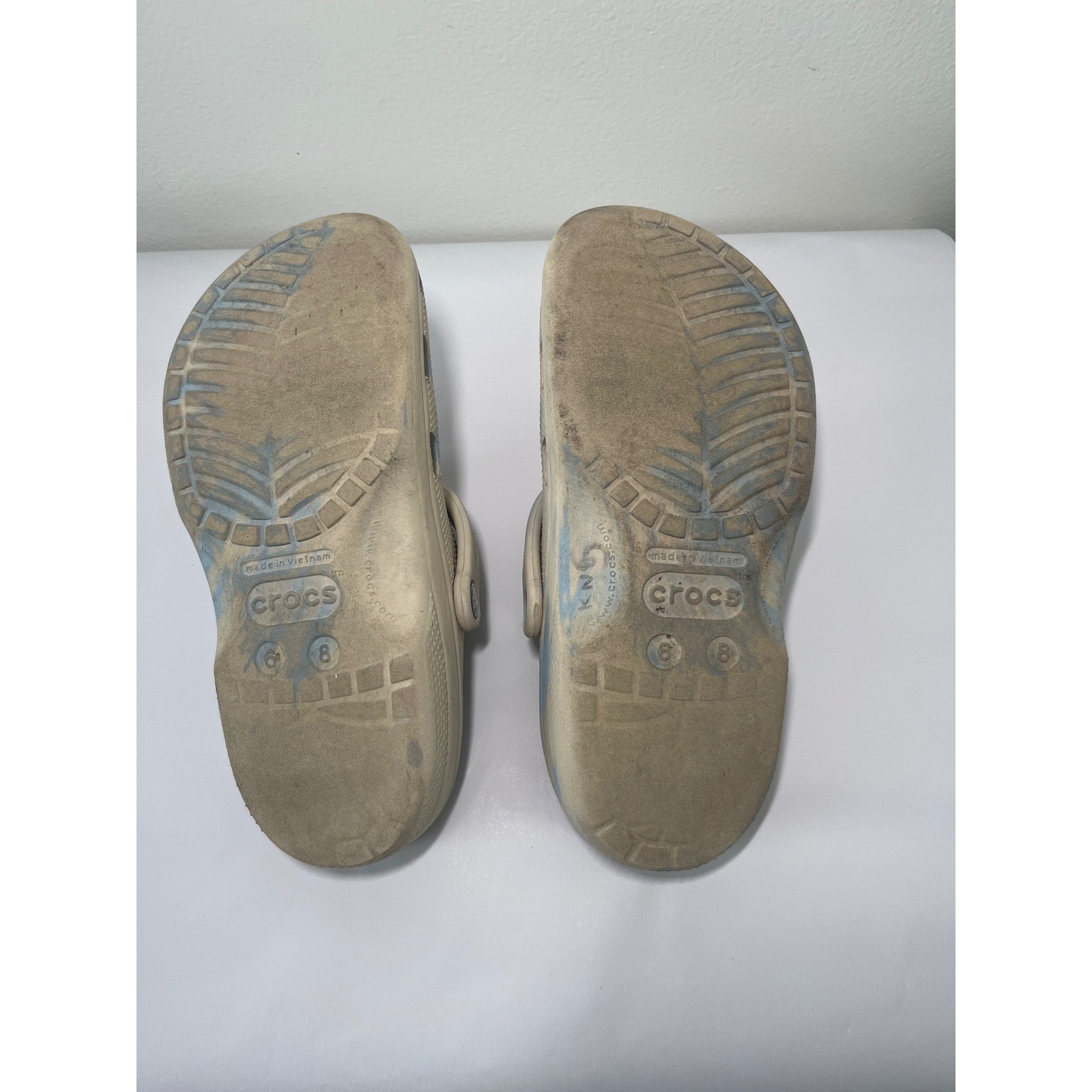 Crocs Classic Clog Sandals Beige Blue Tie Dye Jibbitz Charms Shoes Size 8