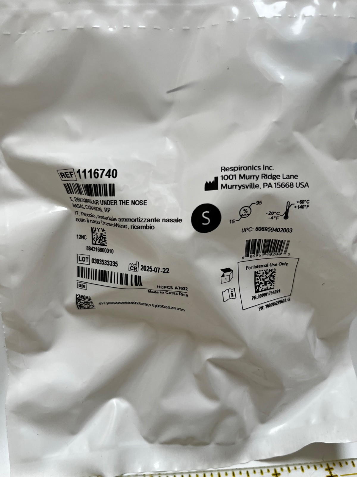 Respironics DreamWear Under the Nose Nasal Cushion, Size: S - Small