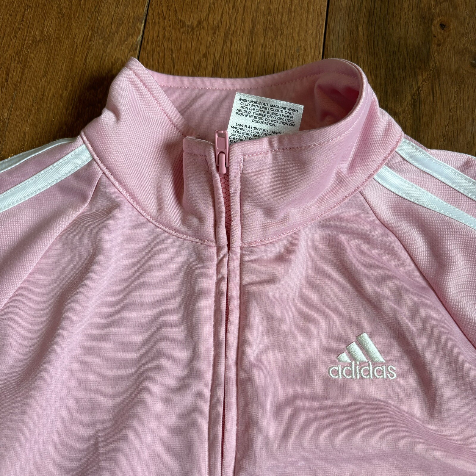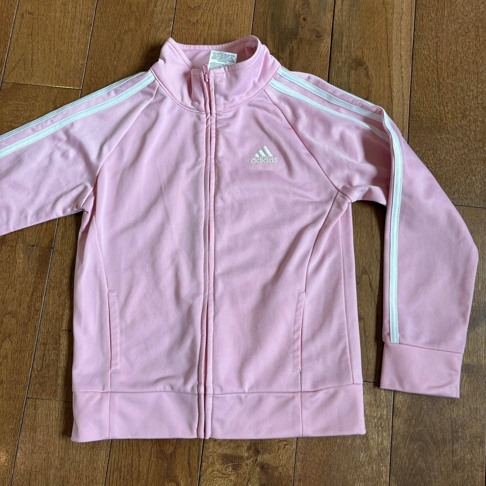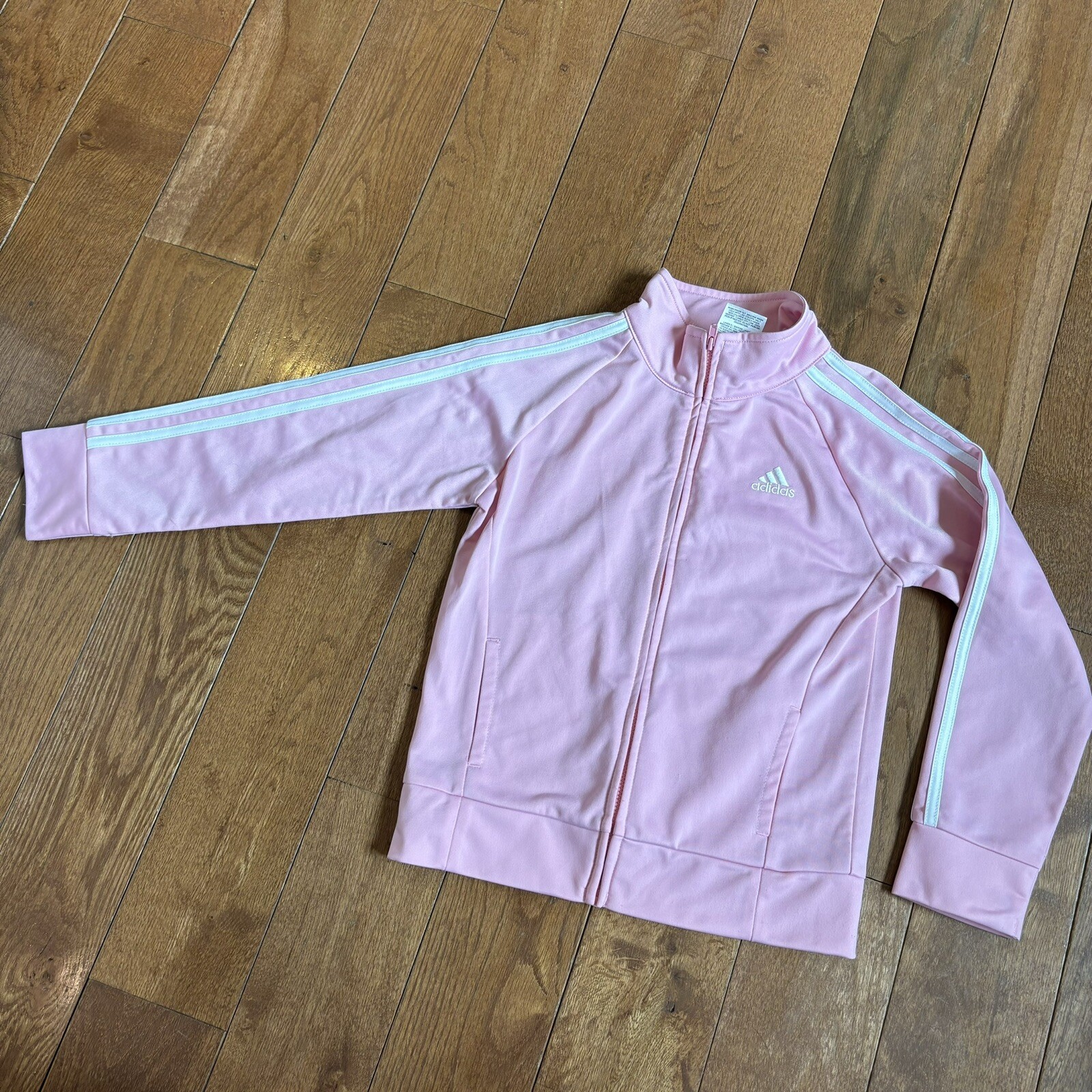 Girls Adidas 2 Piece Tracksuit Pink White Full Zip Jacket Joggers sz 6X