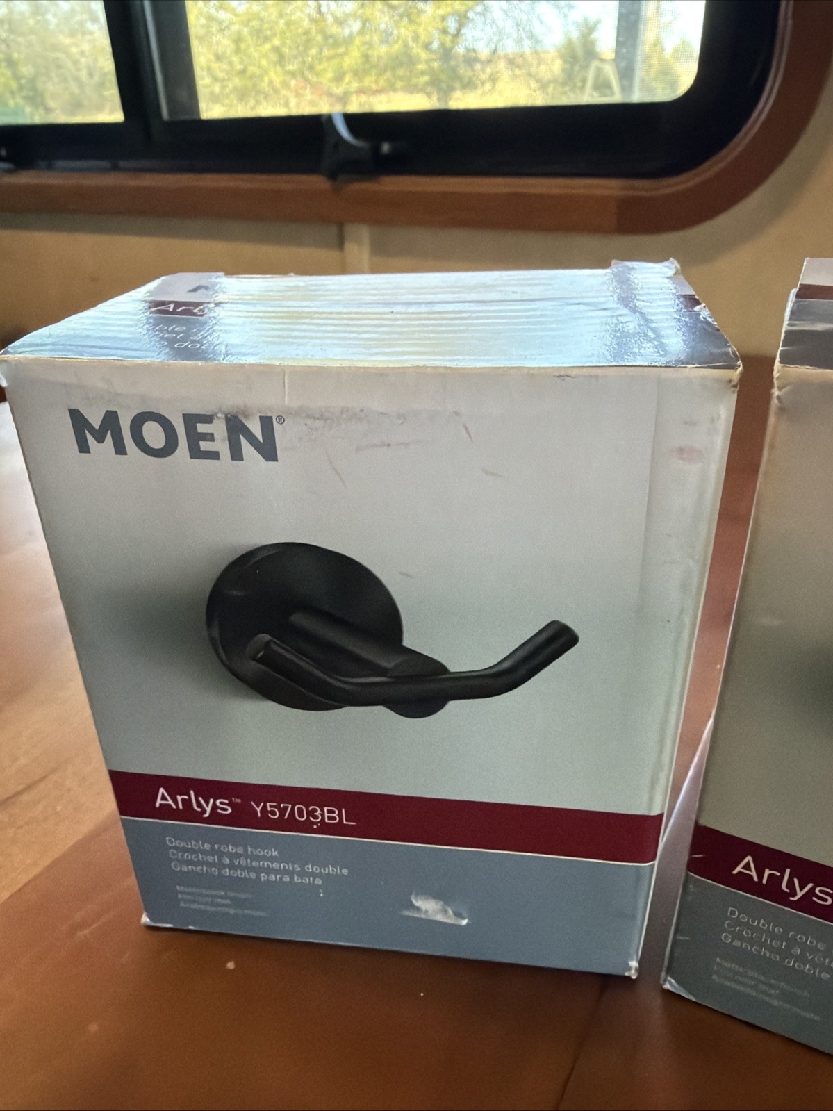 как выглядит 2 Moen Y5703BL Double Robe Hook Matte Black Zinc Residential Arlys Collection фото