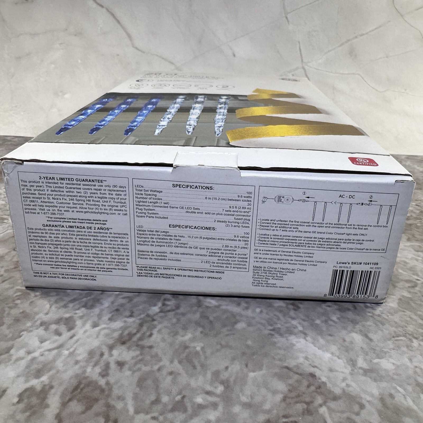 GE 20 Color Choice Dual Color 100 LED Ice Crystal Icicle Lights Blue/Cool White