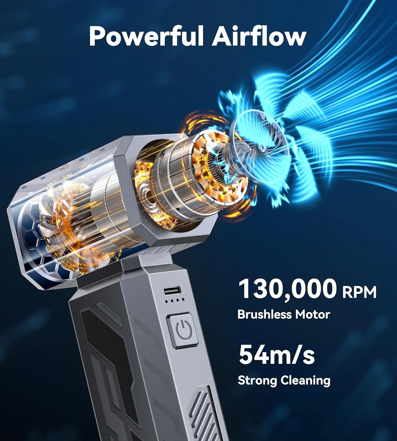 Compressed Air Duster, 130000RPM Electric Air Duster Brushless Motor with Steple