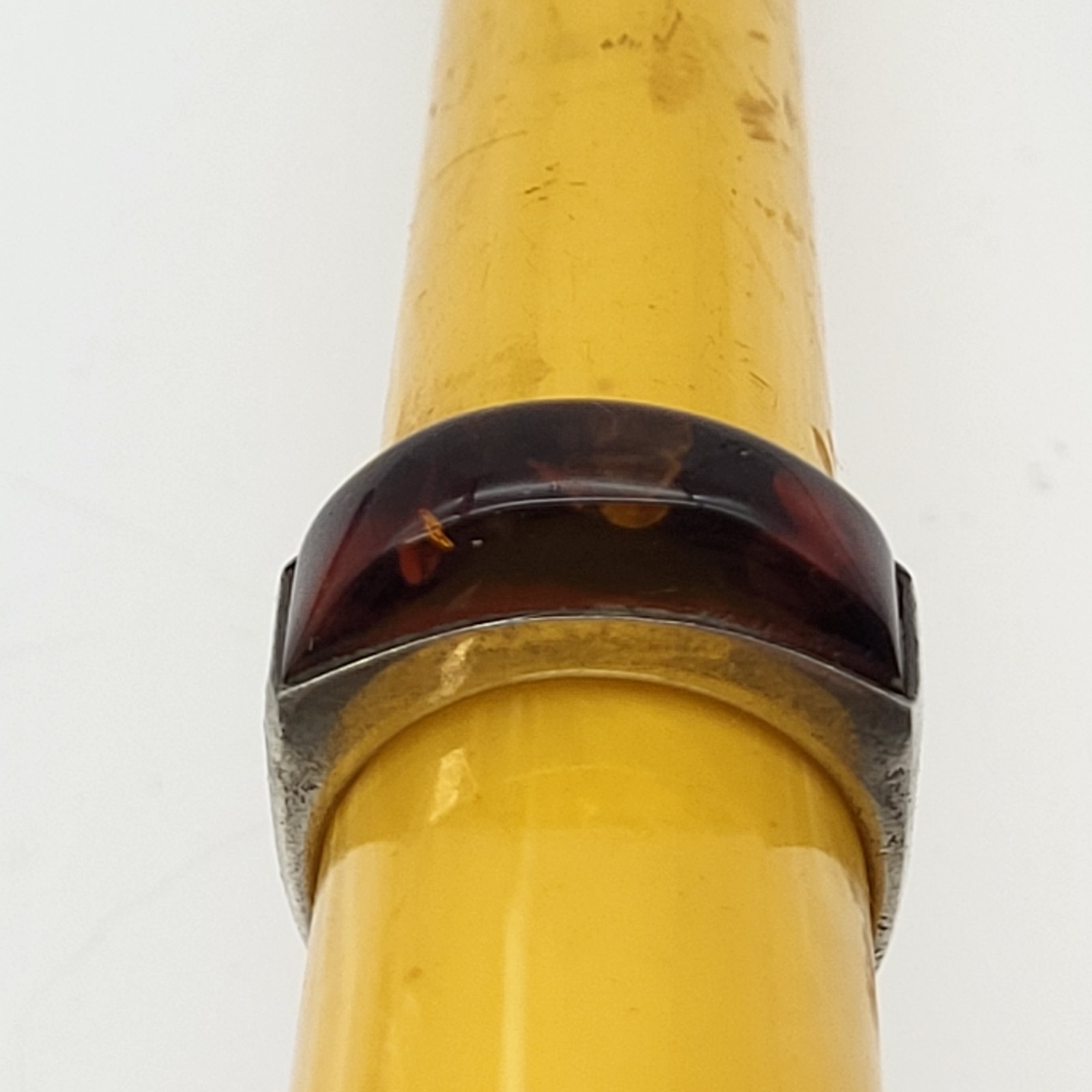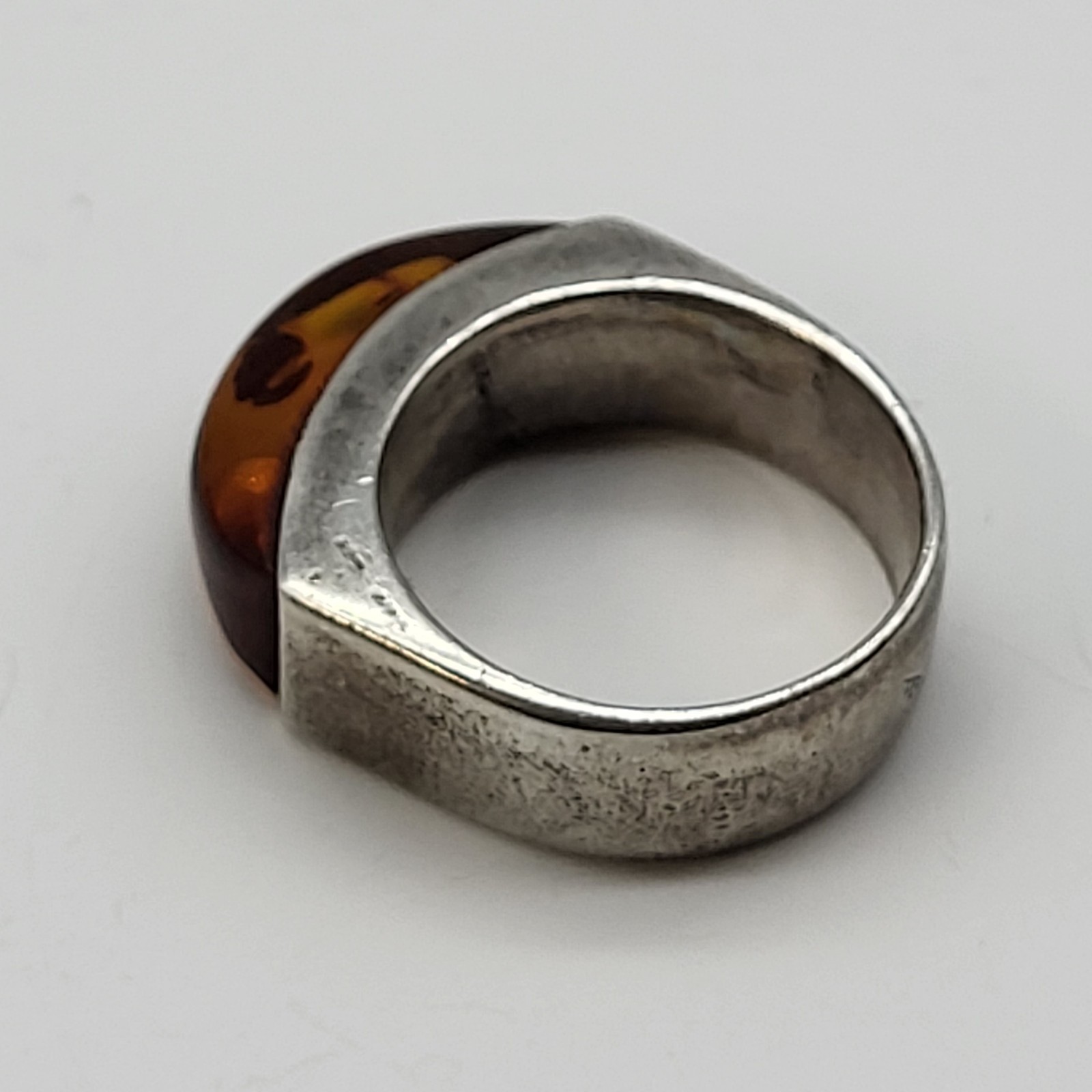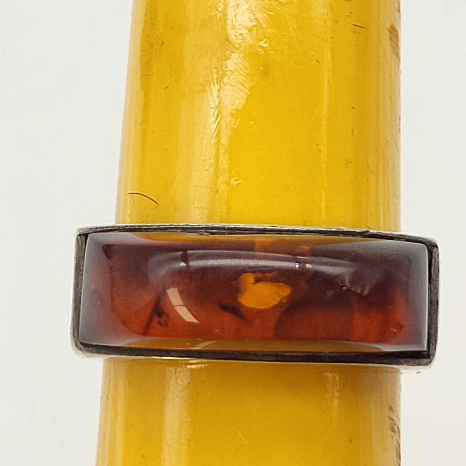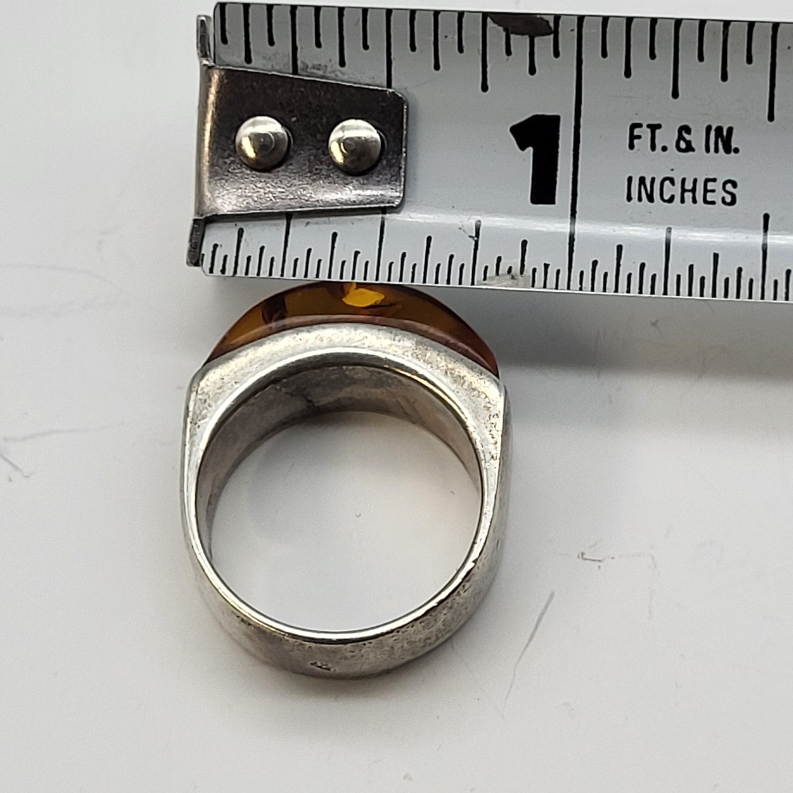 как выглядит Fabulous Sterling Silver Baltic Amber Ring Inclusions sz 8 Vintage Estate фото