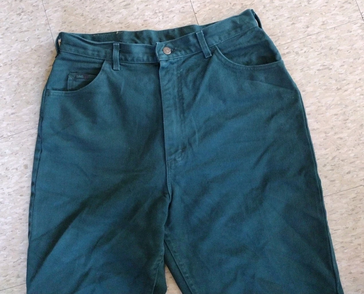 Vintage Lee Denim Jeans High Rise Pine Green USA Union Made Women Sz 16 Med RARE