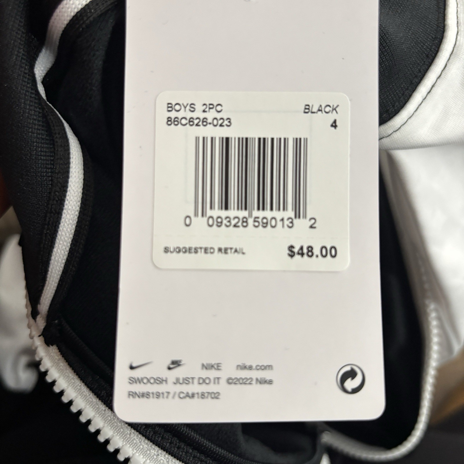 NWT Nike Boy s Size 4 TwoPiece Jogging Set Black White Tracksuit Activewear