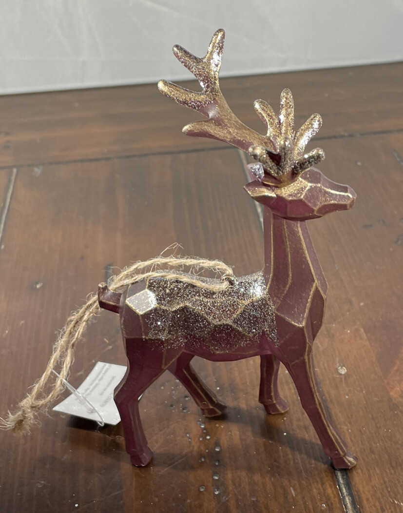 Reindeer Deer Brown Rustic Country Glittery Christmas Holiday Ornament NEW READ