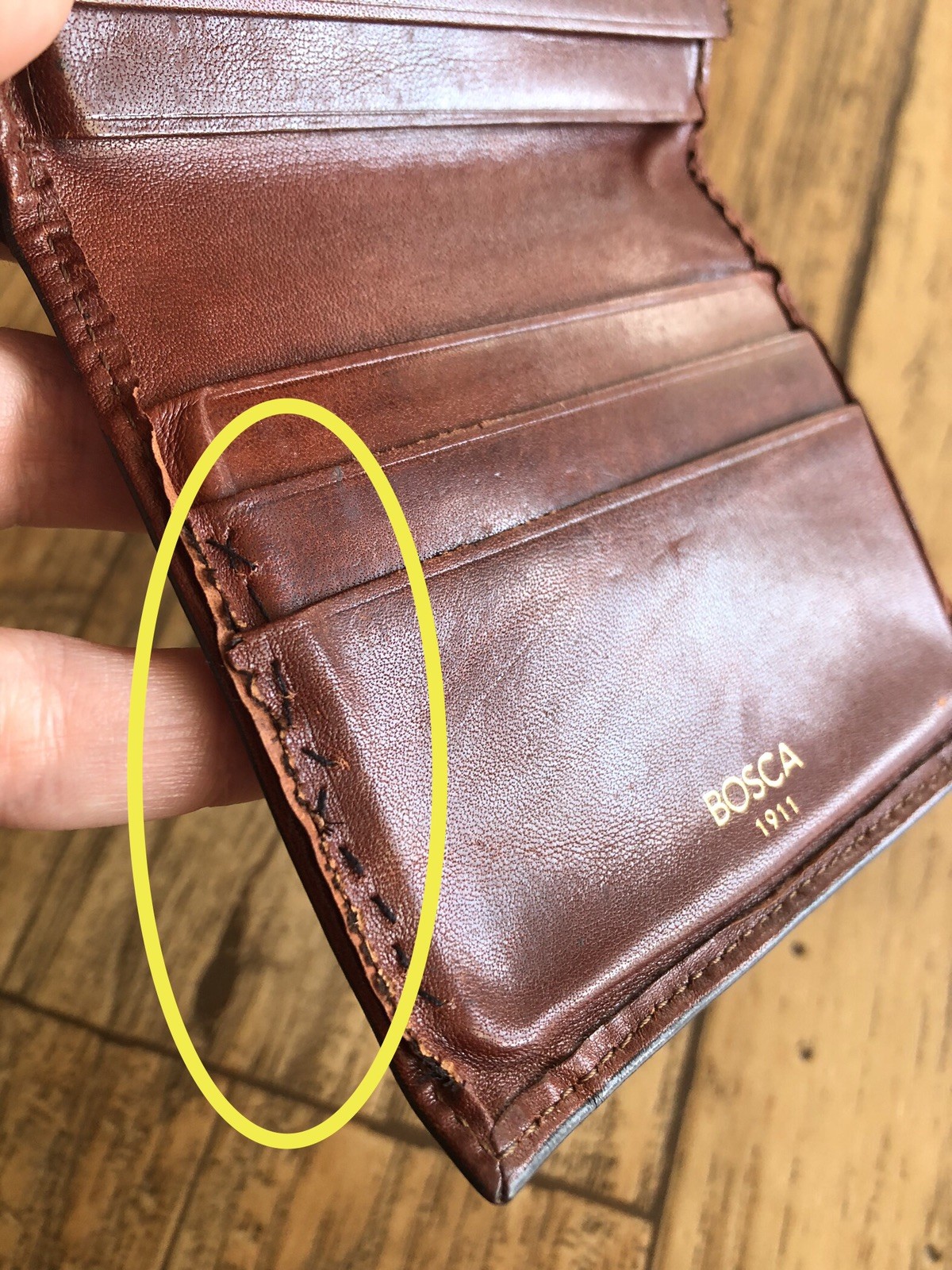 как выглядит Bosca 1911 Old Leather Bifold Wallet w/Card I.D. Flap - Has Small Repair Spot фото