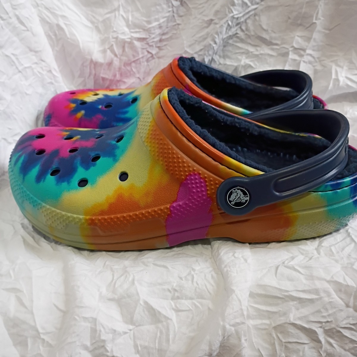 как выглядит Crocs Unisex Original Lined Clogs Size 6 Mens 8 Womens Tie Dye Rainbow фото