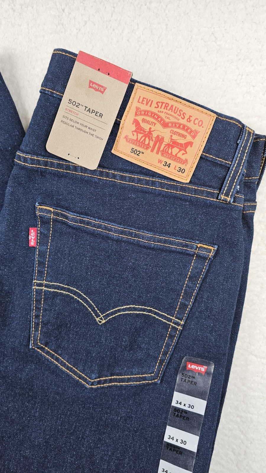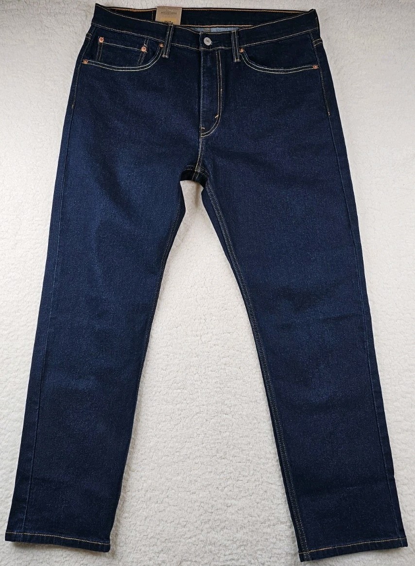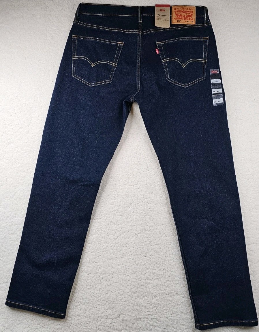 как выглядит Levis 502 Taper Mens Jeans Blue Dark Wash Denim 34x30 Work Cowboy Cotton Blend фото