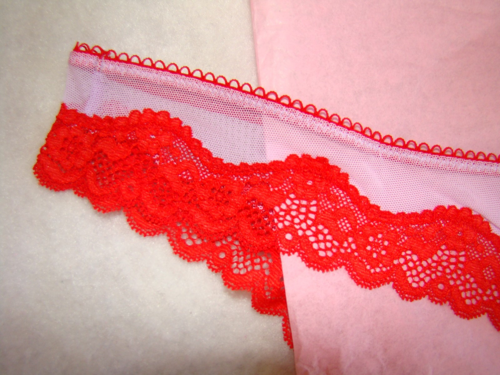 как выглядит New Victorias Secret Tease Lavender Mesh Red Floral Lace High Leg Thong Panty фото