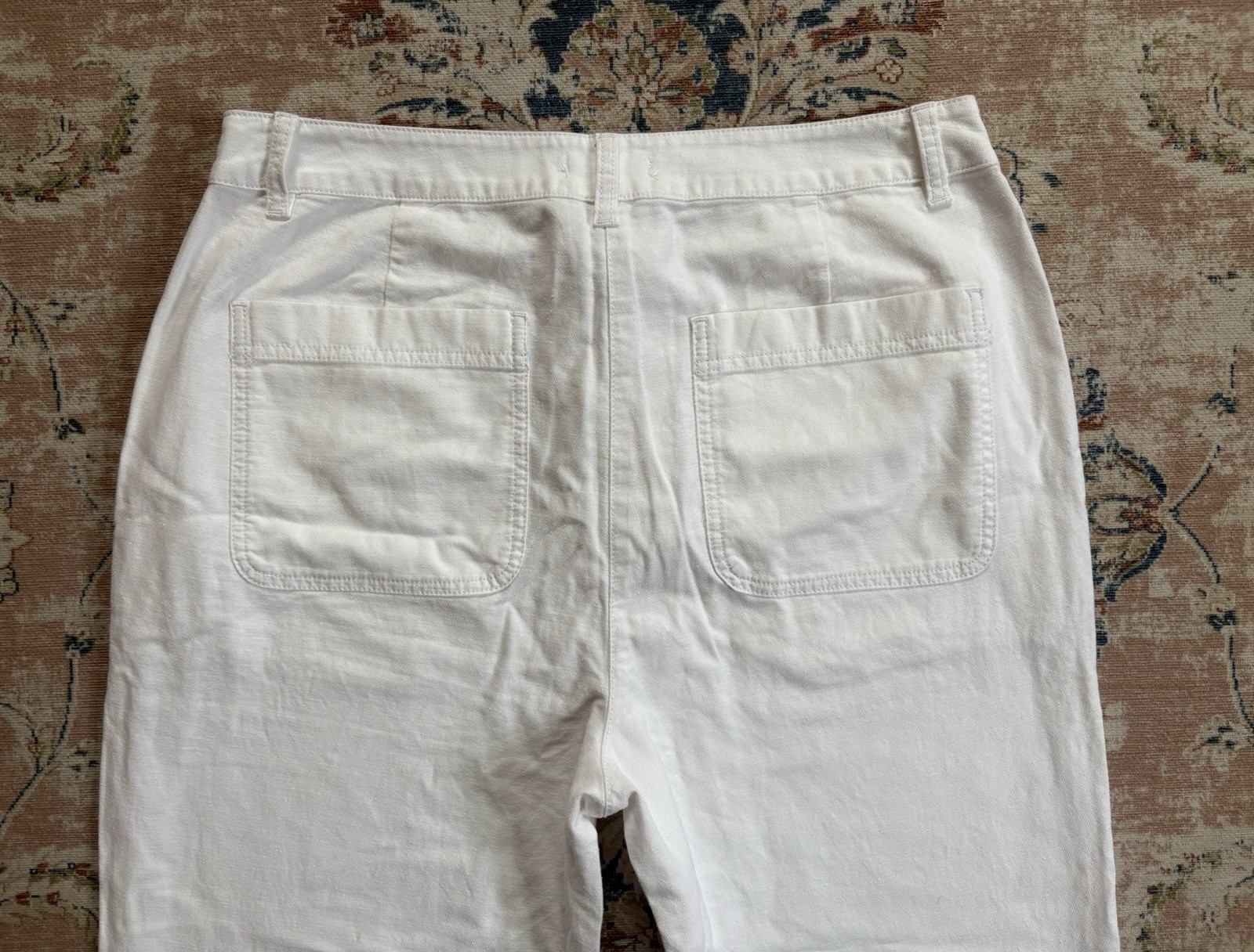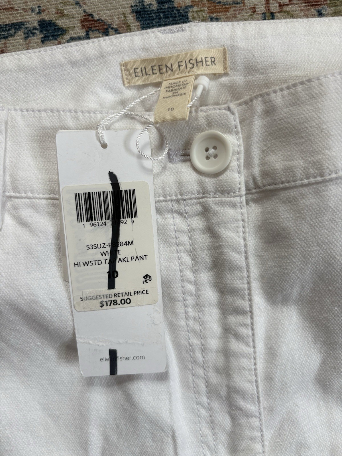 New Eileen Fisher Organic Cotton Hemp High Waist Tapered Ankle Pants White 10
