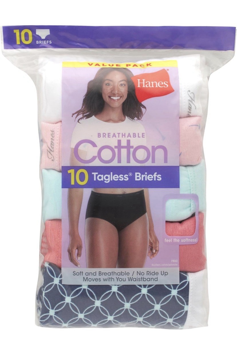 Hanes Womens 10-Pack Cotton Briefs Panties Assorted Colors Sz XL No Tags