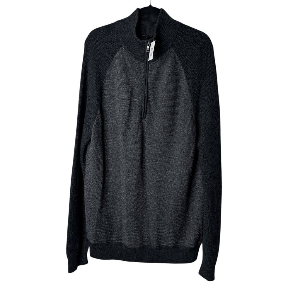 как выглядит Banana Republic Wool Blend Gray Quarter Zip Knit Pullover Sweater Mens XL NEW фото